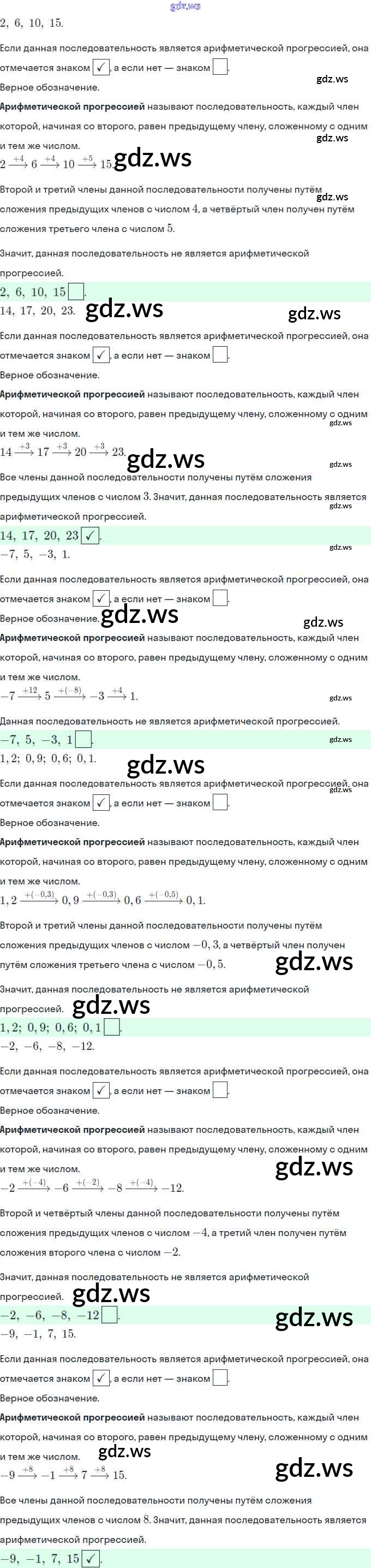 Готовый и полный ответ к §22. Арифметическая прогрессия - Алгебре 9 класс Мерзляк Рабочая тетрадь ФГОС