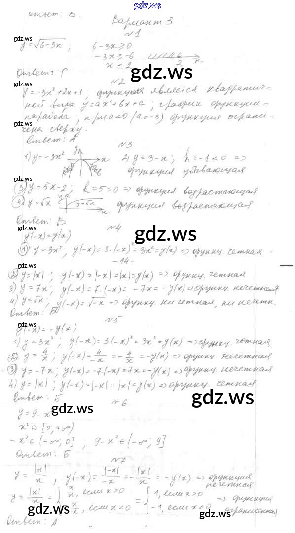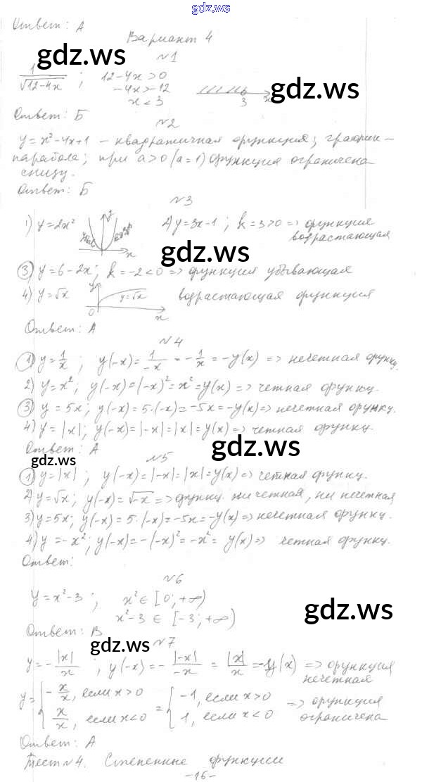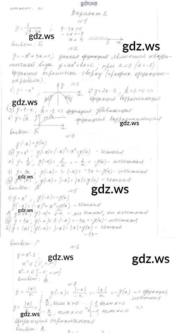 Готовый ответ 9 класс - Алгебре 9 класс Мордкович Тесты Базовый уровень ФГОС