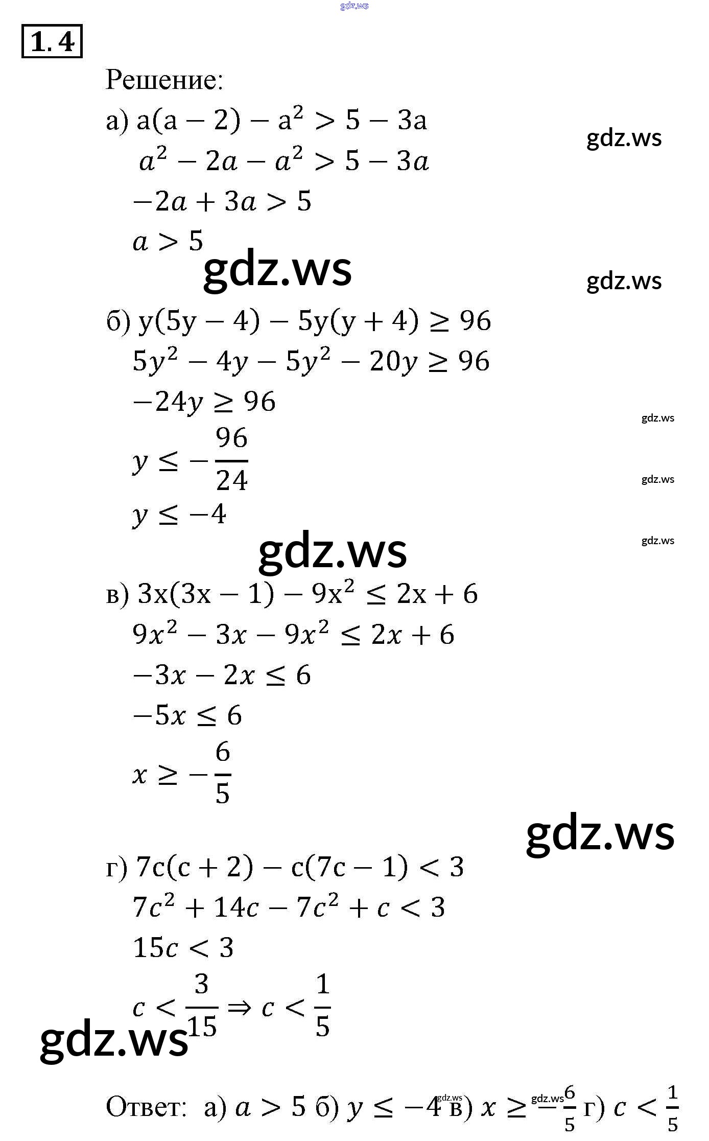 Готовый ответ § 1. Линейные и квадратные неравенства Глава 1. Неравенства и системы неравенств - Алгебре 9 класс Мордкович Задачник ФГОС