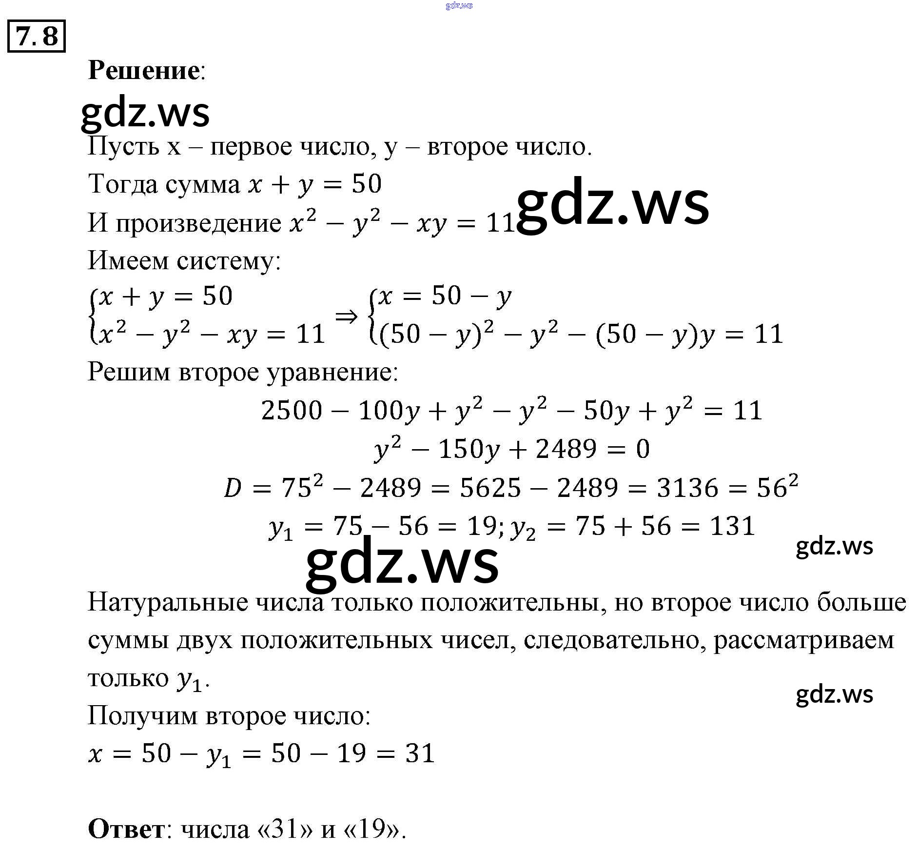 Готовый и полный ответ к § 7. Системы уравнений как математические модели реальных ситуаций Глава 2. Системы уравнений - Алгебре 9 класс Мордкович Задачник ФГОС