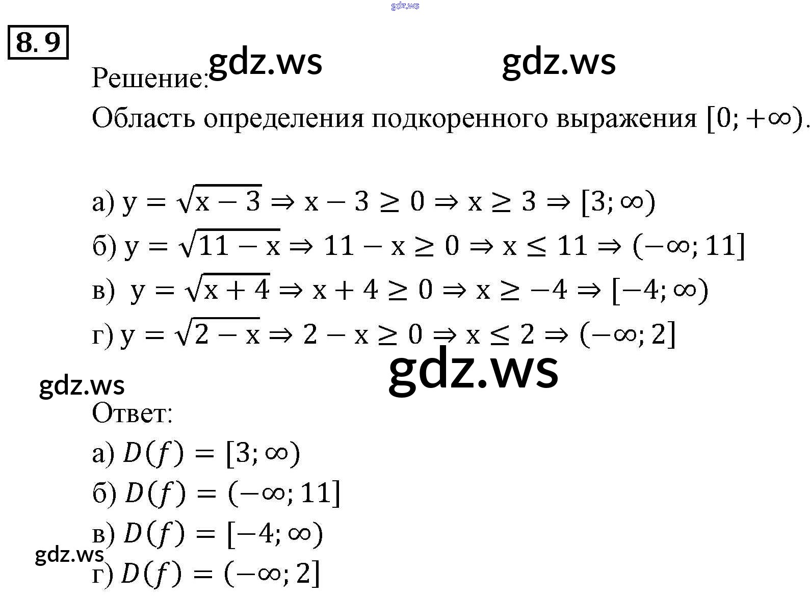 Готовый и полный ответ к § 8. Определение числовой функции. Область определения, область значений функции Глава 3. Числовые функции - Алгебре 9 класс Мордкович Задачник ФГОС