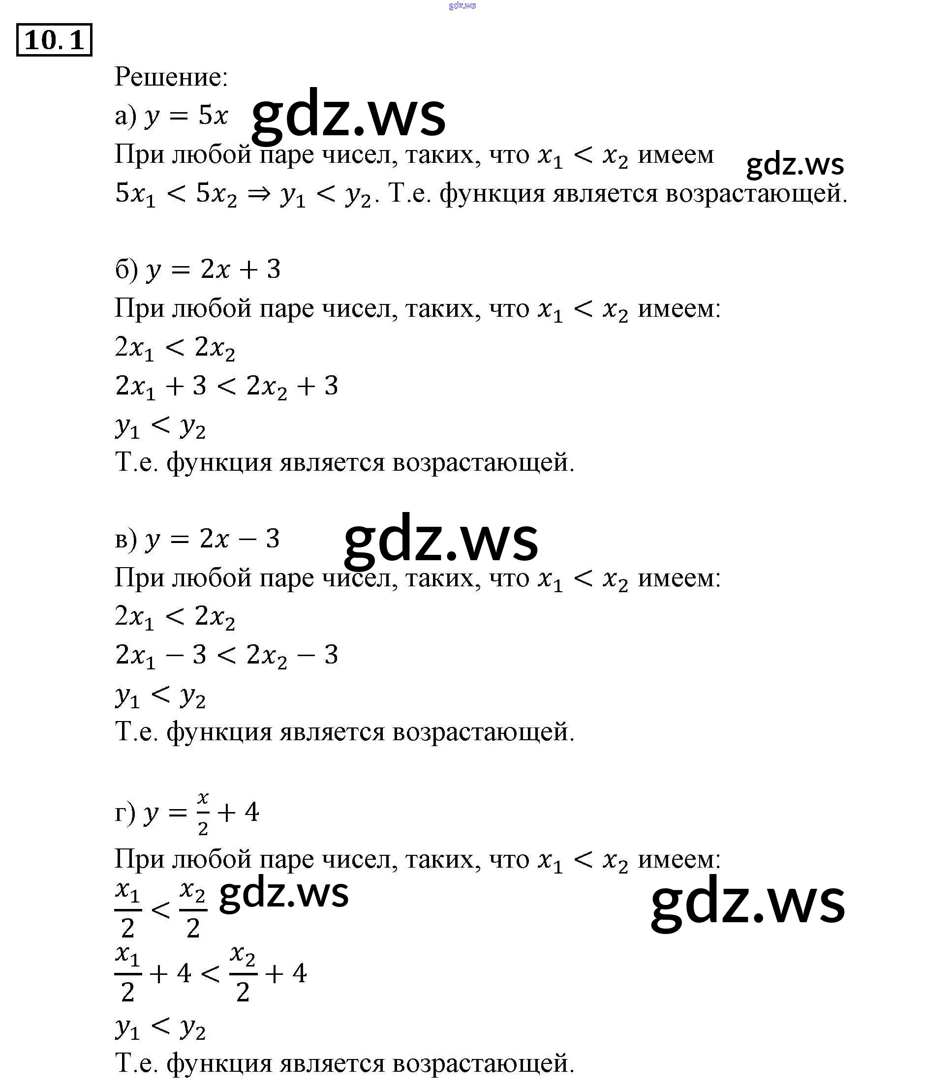 Готовый ответ § 10. Свойства функций Глава 3. Числовые функции - Алгебре 9 класс Мордкович Задачник ФГОС