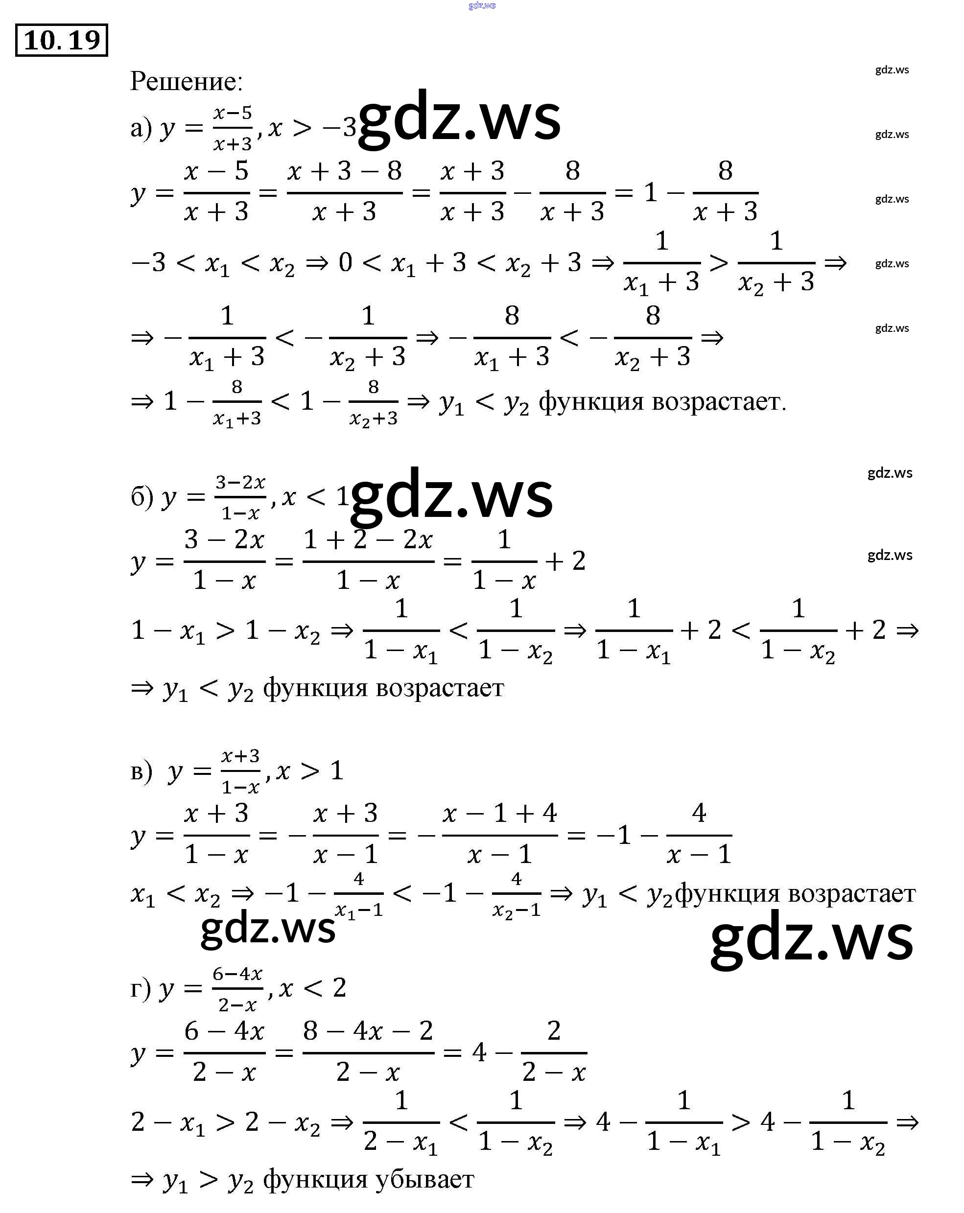 Готовый и полный ответ к § 10. Свойства функций Глава 3. Числовые функции - Алгебре 9 класс Мордкович Задачник ФГОС