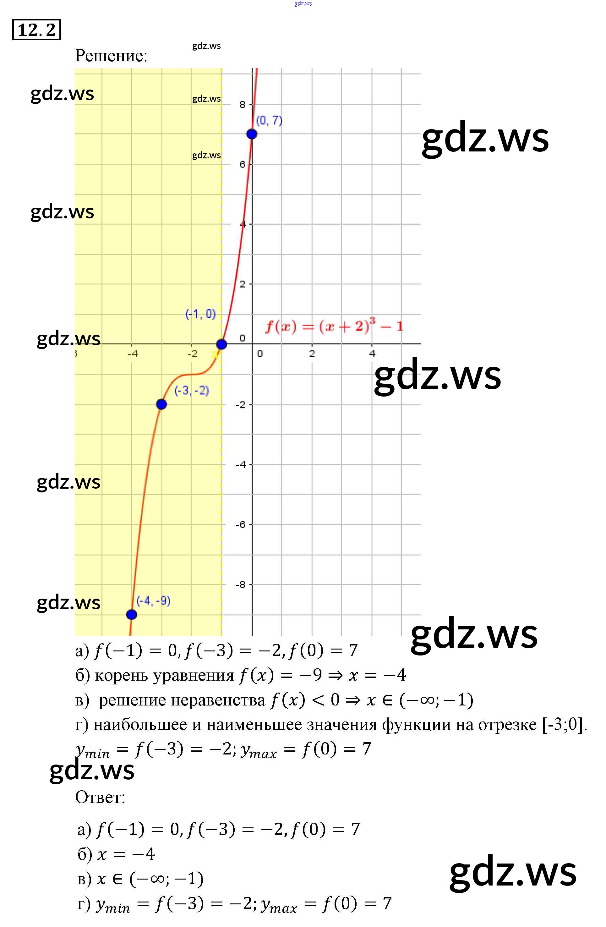 Готовый и полный ответ к § 12. Функции у = хп (п е N), их свойства и графики Глава 3. Числовые функции - Алгебре 9 класс Мордкович Задачник ФГОС