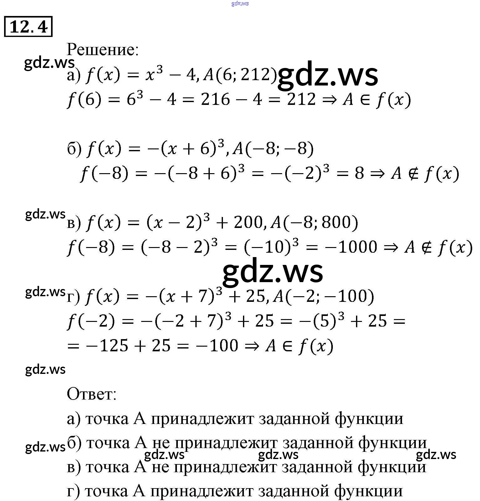 Готовый и полный ответ к § 12. Функции у = хп (п е N), их свойства и графики Глава 3. Числовые функции - Алгебре 9 класс Мордкович Задачник ФГОС