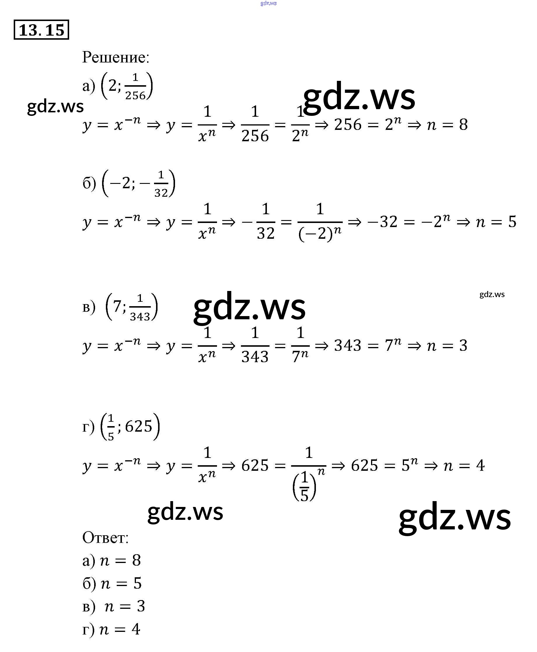 Готовый ответ § 13. Функции у = х~" (п е N), их свойства и графики Глава 3. Числовые функции - Алгебре 9 класс Мордкович Задачник ФГОС