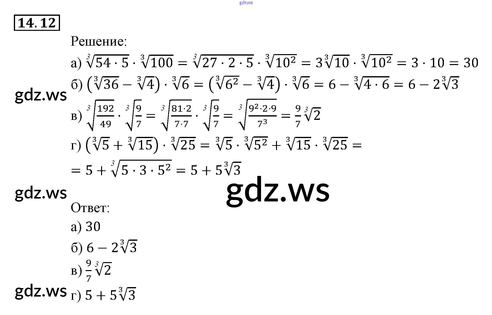 Готовый и полный ответ к § 14. Функция у = 3√х, ее свойства и график Глава 3. Числовые функции - Алгебре 9 класс Мордкович Задачник ФГОС