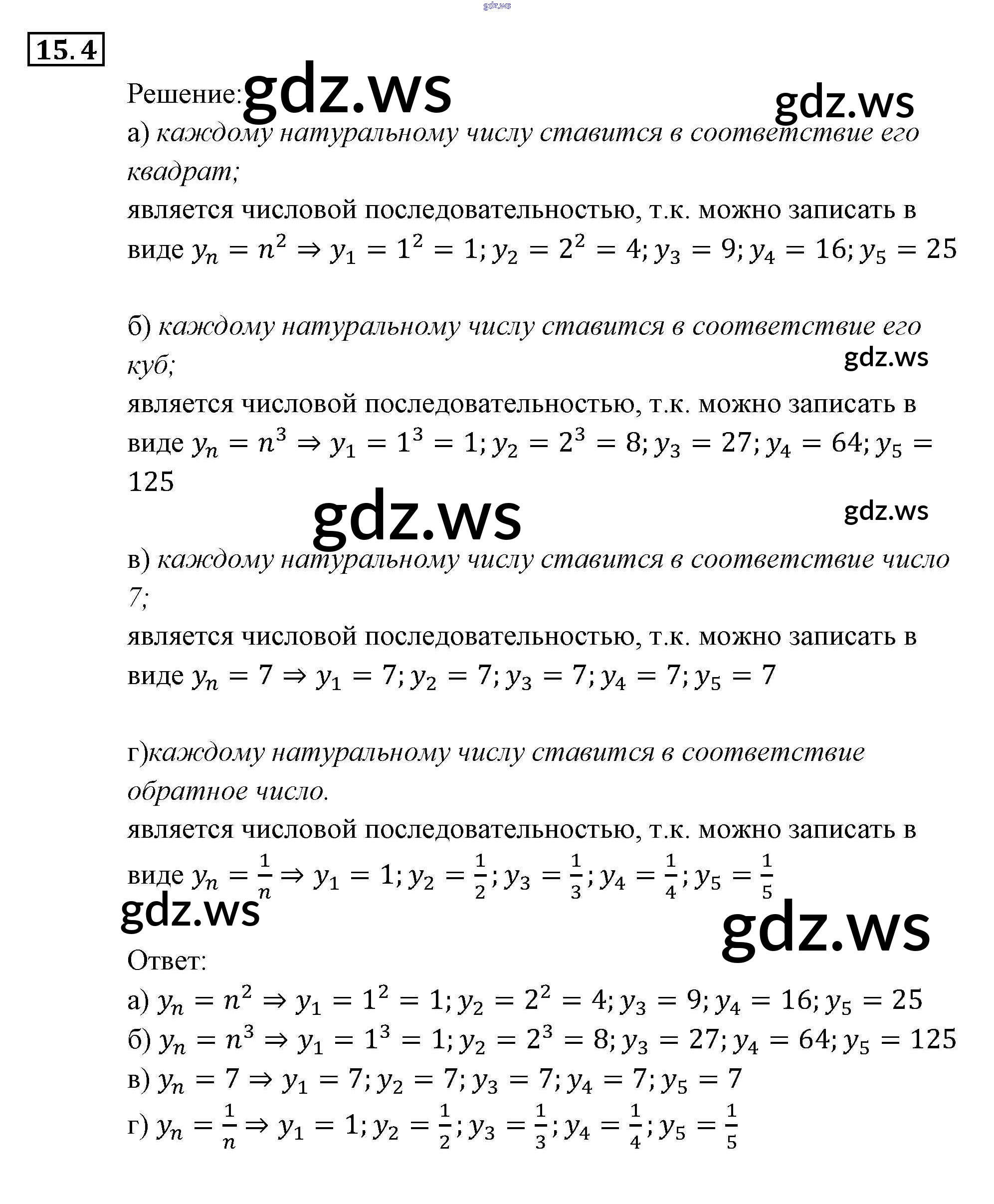 Готовый ответ § 15. Числовые последовательности Глава 4. Прогрессии - Алгебре 9 класс Мордкович Задачник ФГОС