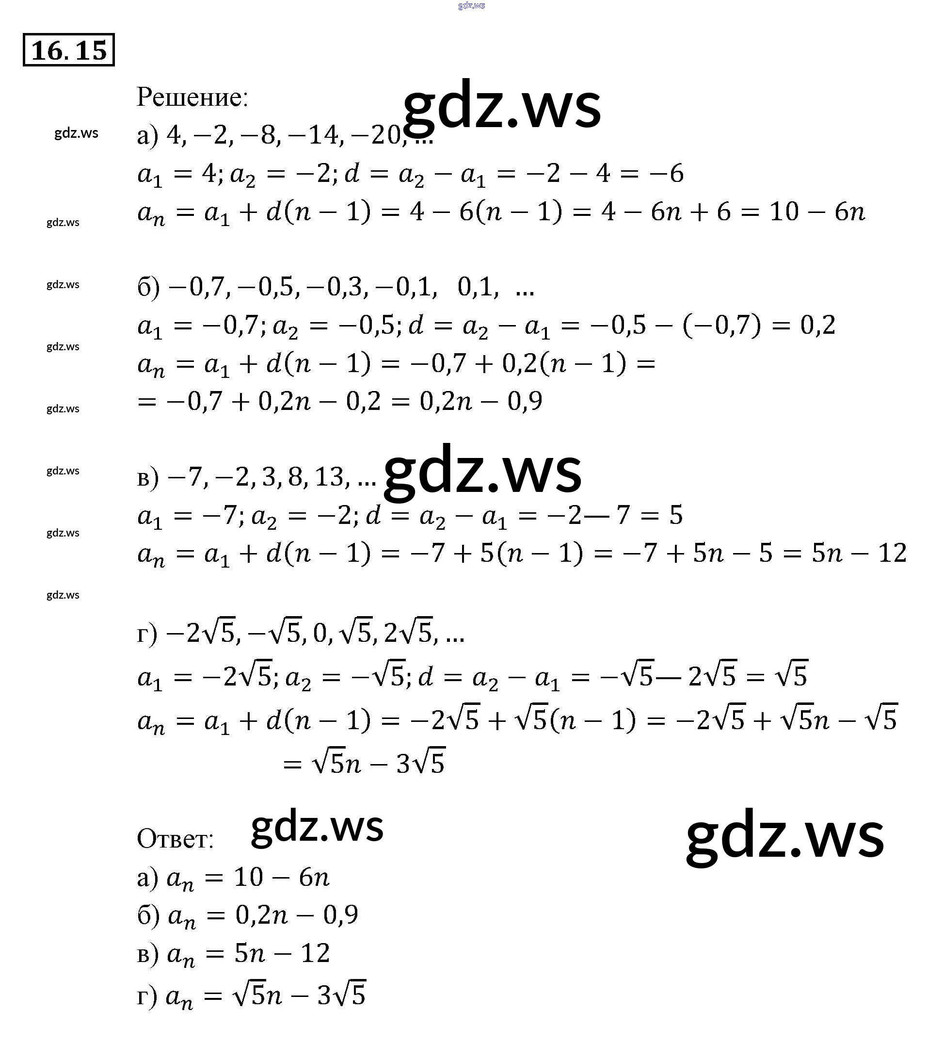Готовый и полный ответ к § 16. Арифметическая прогрессия Глава 4. Прогрессии - Алгебре 9 класс Мордкович Задачник ФГОС