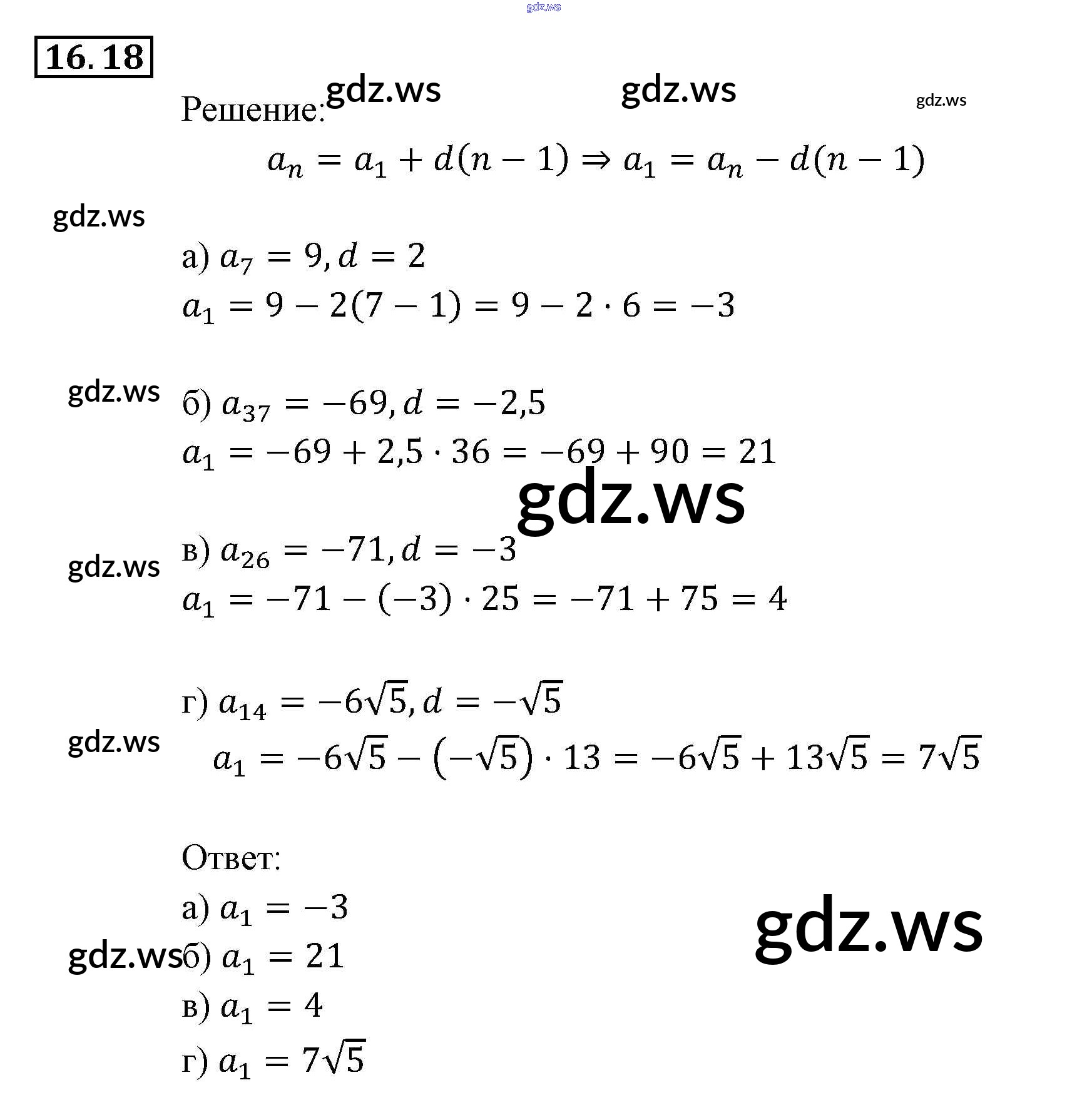 Готовый и полный ответ к § 16. Арифметическая прогрессия Глава 4. Прогрессии - Алгебре 9 класс Мордкович Задачник ФГОС