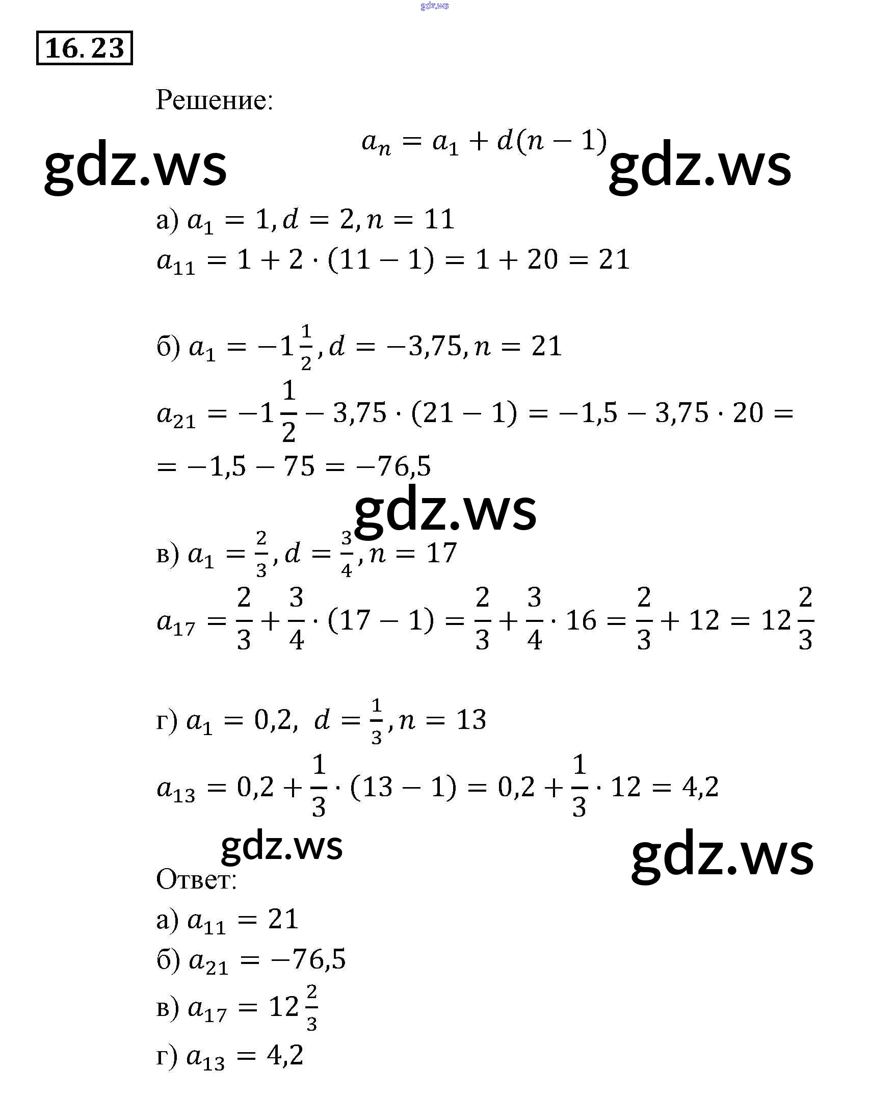 Готовый и полный ответ к § 16. Арифметическая прогрессия Глава 4. Прогрессии - Алгебре 9 класс Мордкович Задачник ФГОС