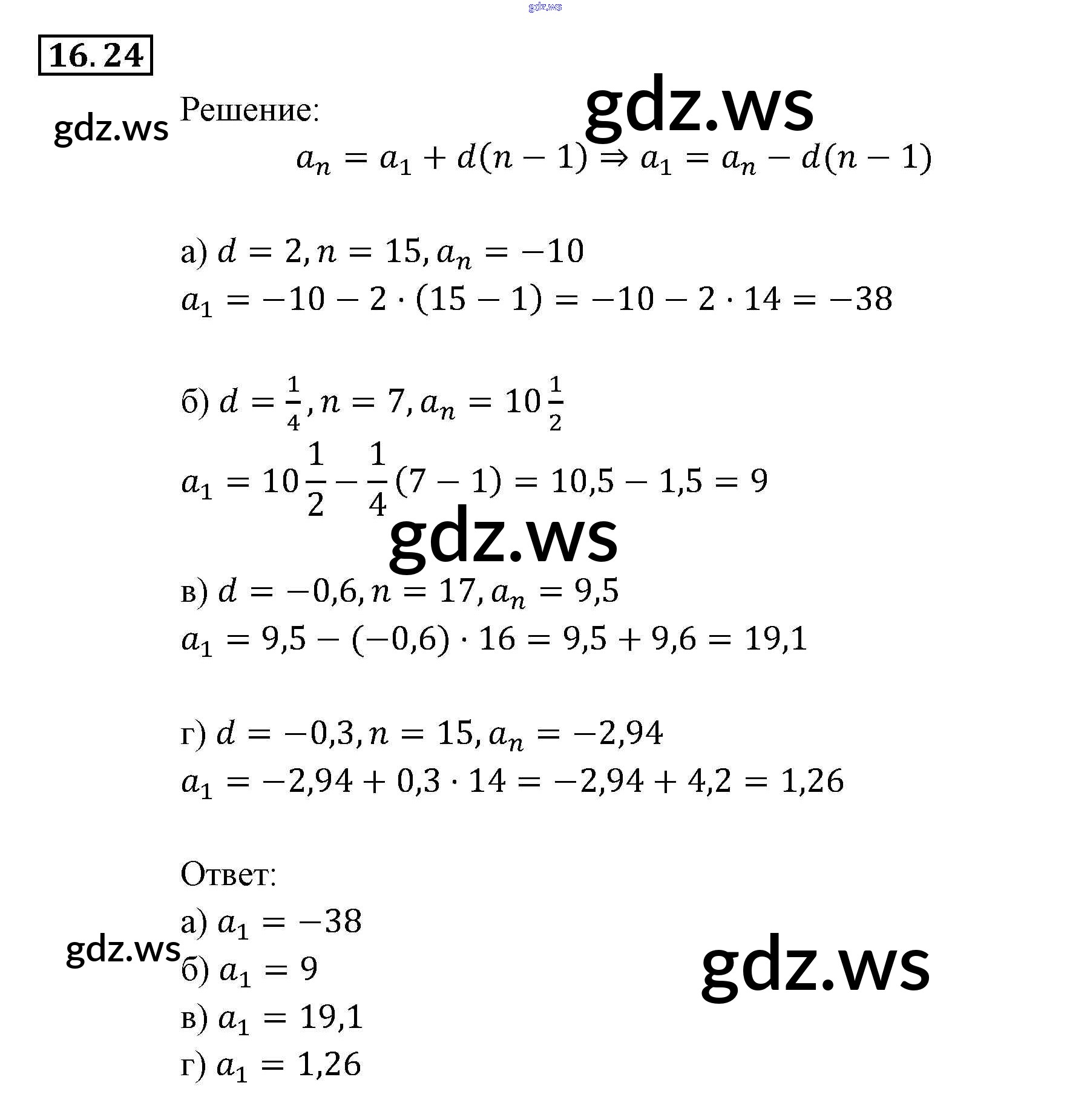 Готовый и полный ответ к § 16. Арифметическая прогрессия Глава 4. Прогрессии - Алгебре 9 класс Мордкович Задачник ФГОС