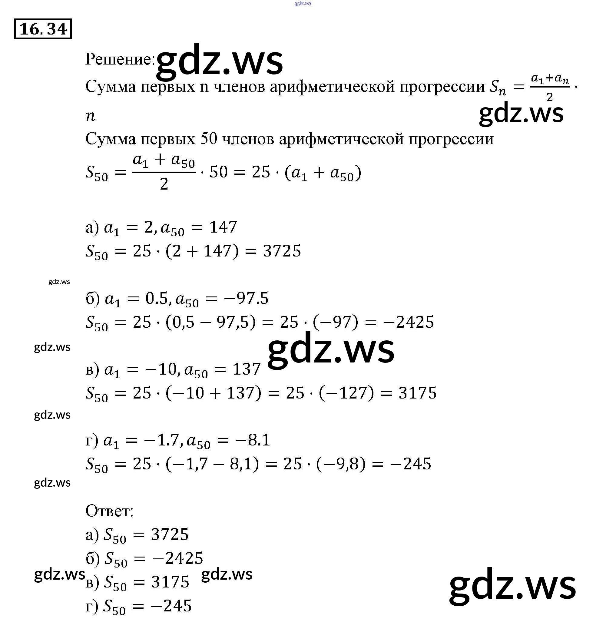 Готовый и полный ответ к § 16. Арифметическая прогрессия Глава 4. Прогрессии - Алгебре 9 класс Мордкович Задачник ФГОС