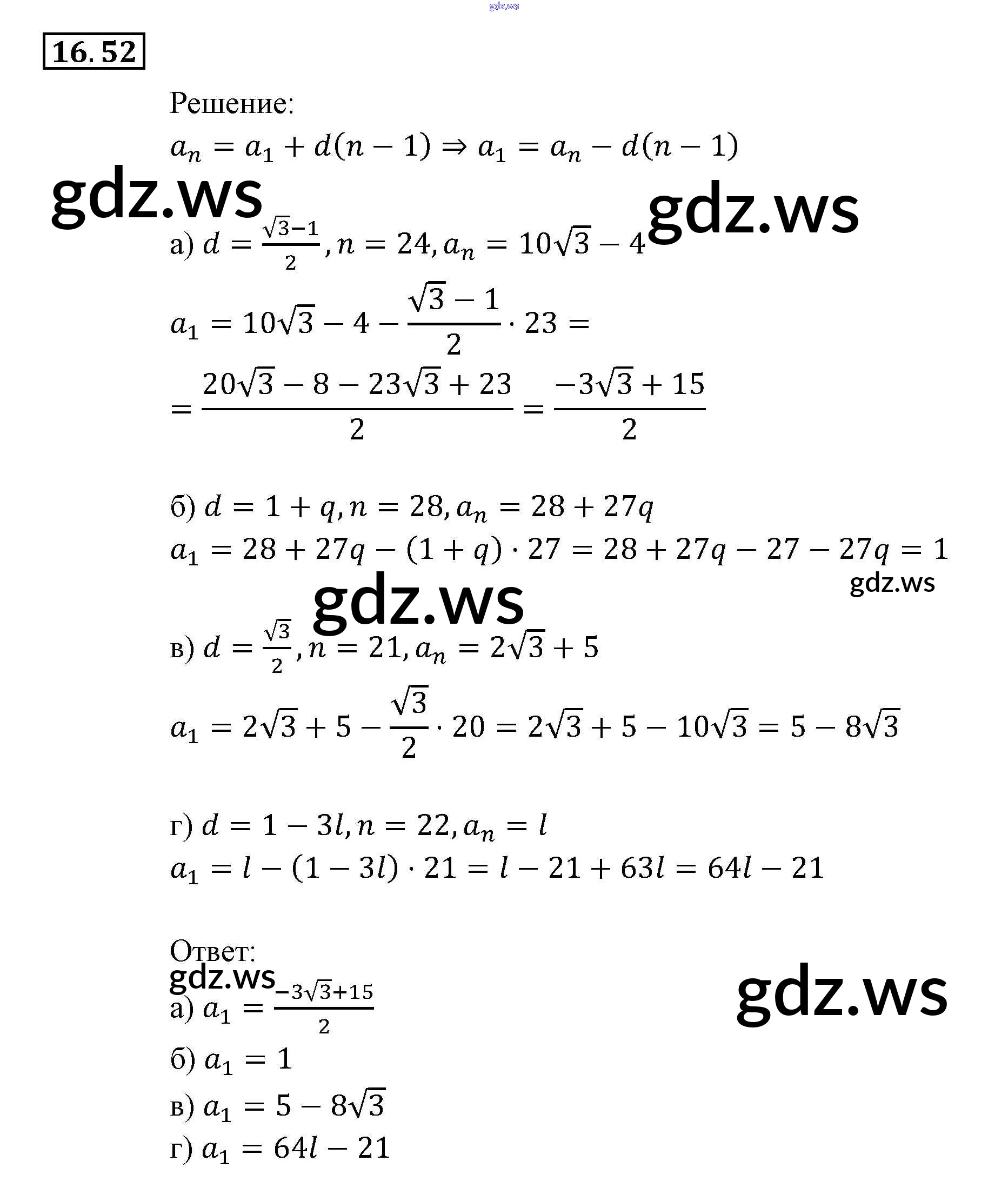 Готовый и полный ответ к § 16. Арифметическая прогрессия Глава 4. Прогрессии - Алгебре 9 класс Мордкович Задачник ФГОС