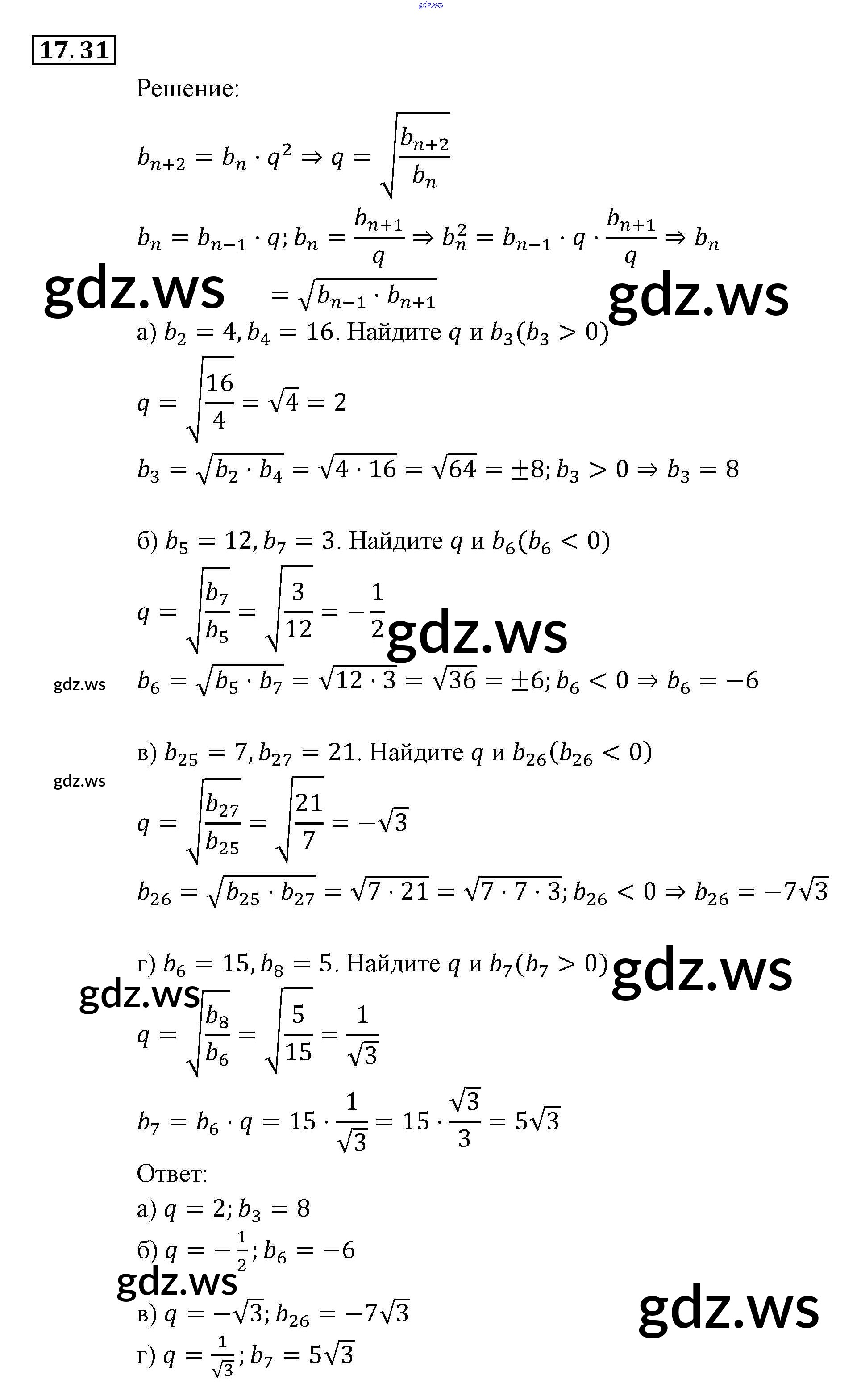 Готовый ответ § 17. Геометрическая прогрессия Глава 4. Прогрессии - Алгебре 9 класс Мордкович Задачник ФГОС