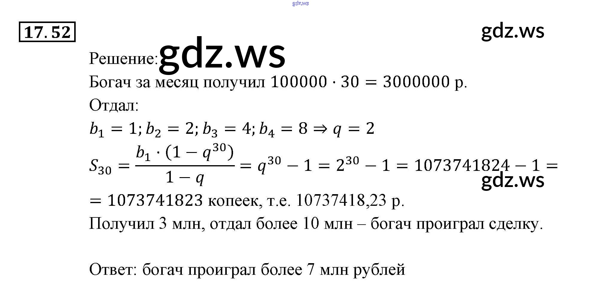 Готовый и полный ответ к § 17. Геометрическая прогрессия Глава 4. Прогрессии - Алгебре 9 класс Мордкович Задачник ФГОС