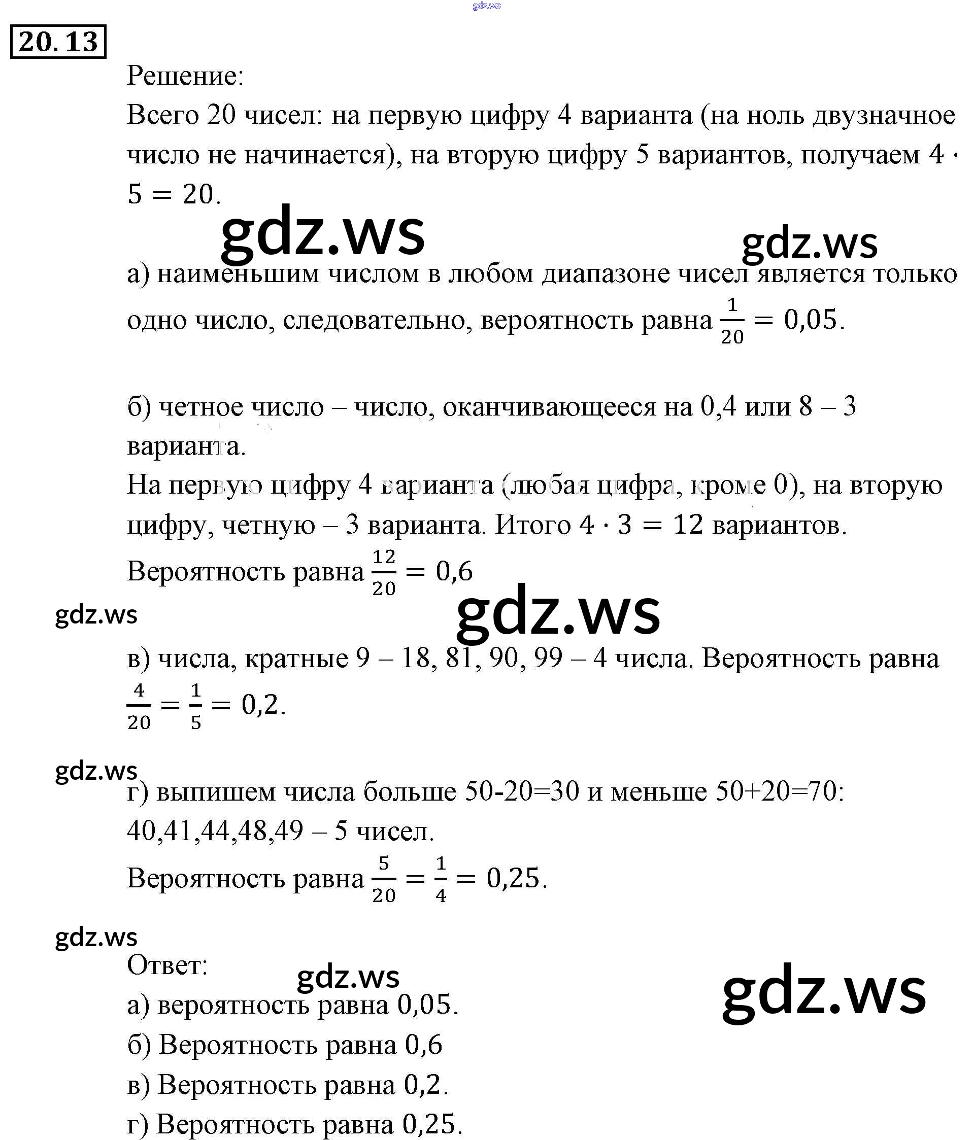 Готовый и полный ответ к § 20. Простейшие вероятностные задачи Глава 5. Элементы комбинаторики, статистики и теории вероятностей - Алгебре 9 класс Мордкович Задачник ФГОС