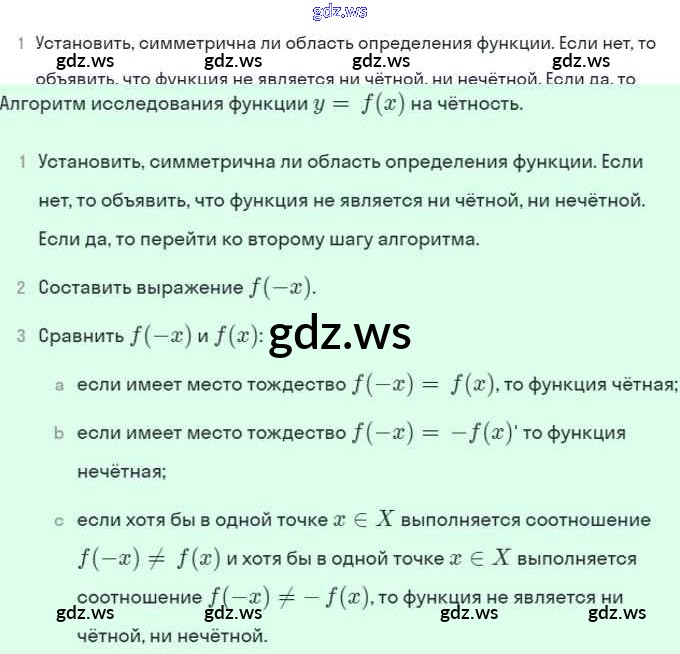 Готовый ответ §11. Чётные и нечётные функции - Алгебре 9 класс Мордкович Учебник Базовый уровень ФГОС