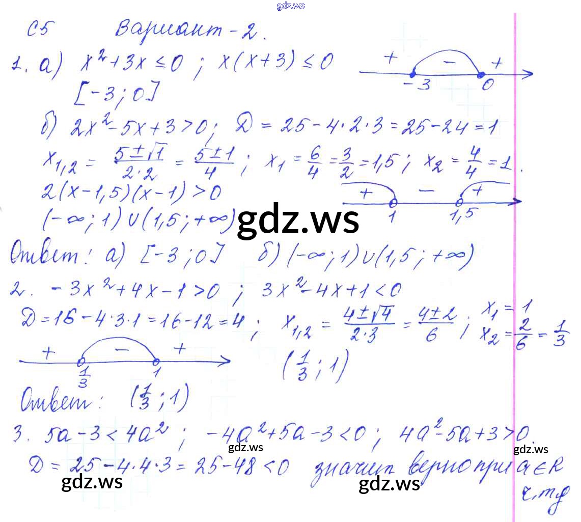 Готовый и полный ответ к С-5. Решение квадратичных неравенств Самостоятельные работы - Алгебре 9 класс Журавлев Контрольные и самостоятельные работы УМК ФГОС