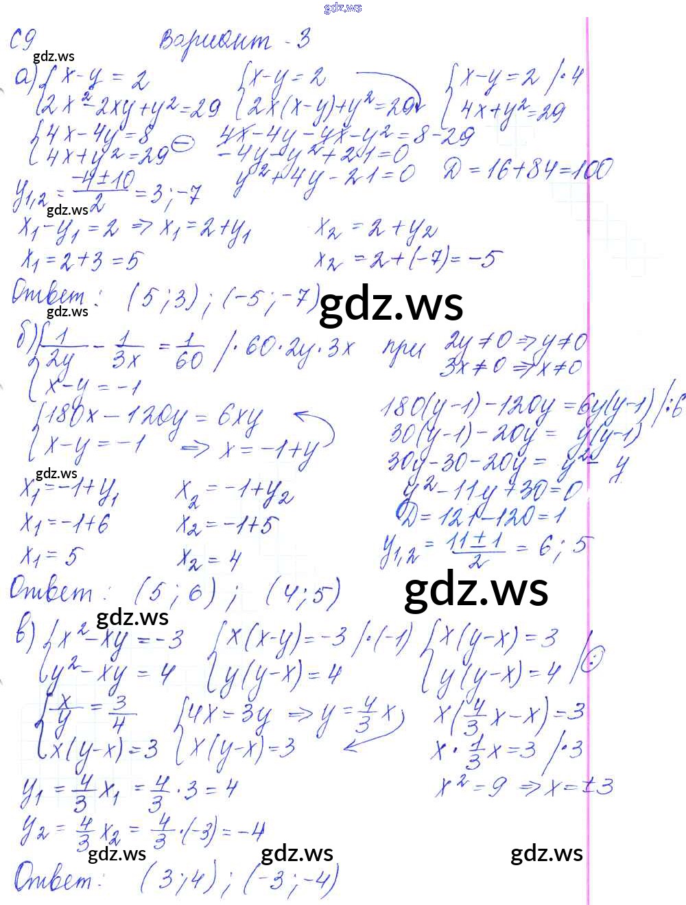 С-9. Решение систем уравнений второй степени