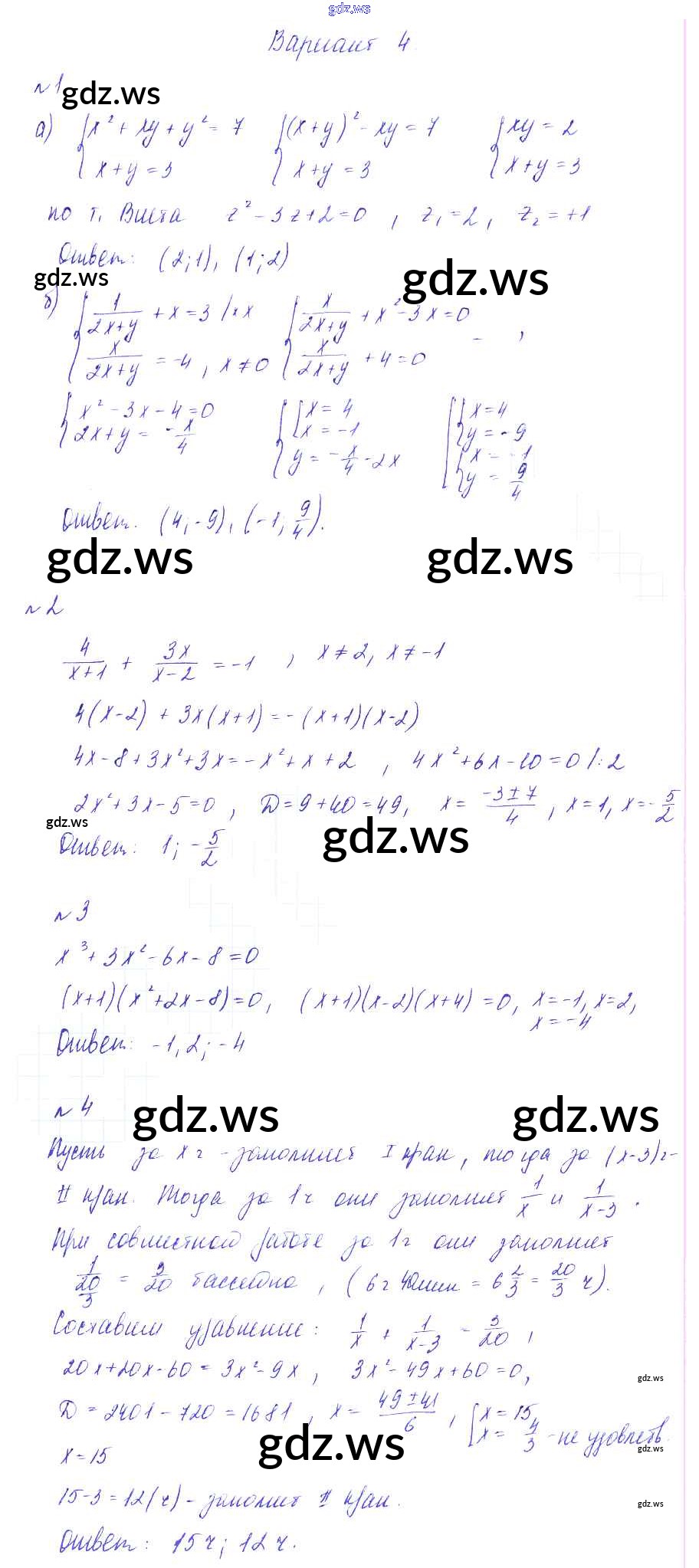 Готовый ответ КР-1. Алгебраические уравнения. Системы алгебраических уравнений Контрольные работы - Алгебре 9 класс Зив Дидактические материалы ФГОС