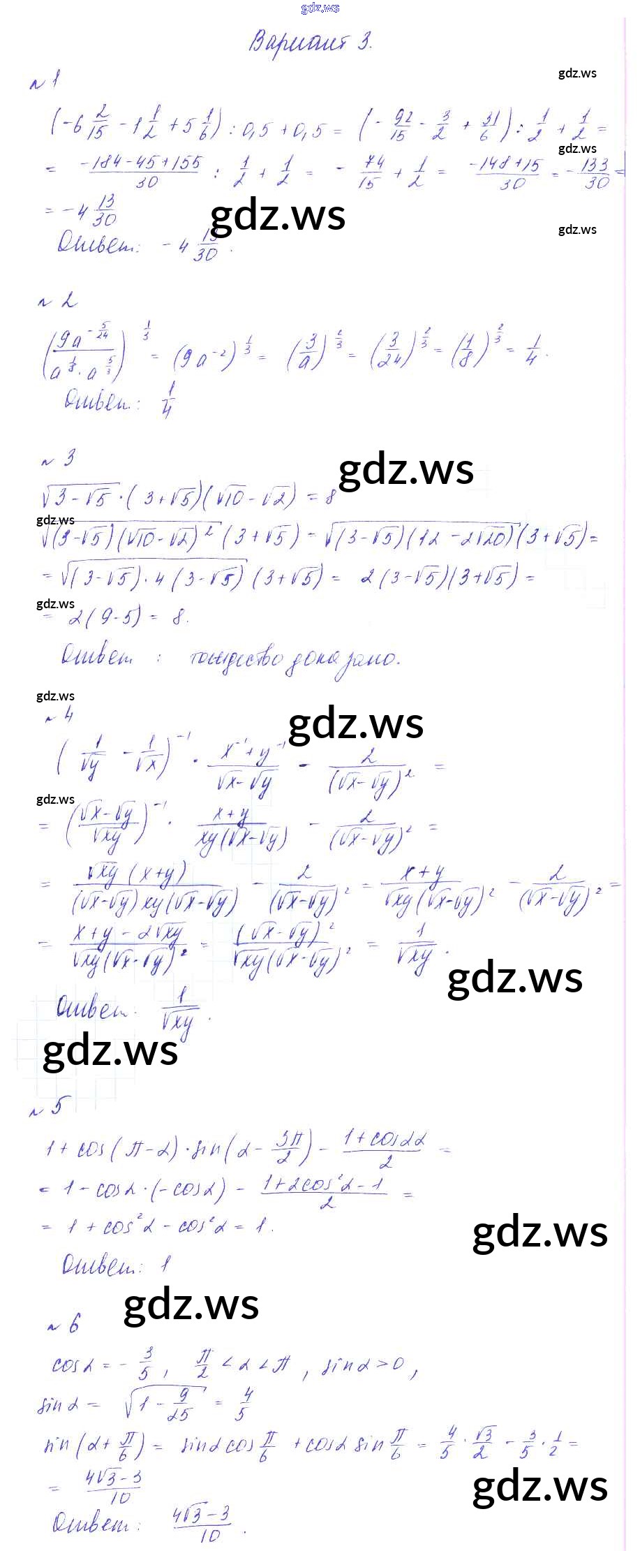 Готовый и полный ответ к ПР-1 Проверочные работы на повторение - Алгебре 9 класс Зив Дидактические материалы ФГОС