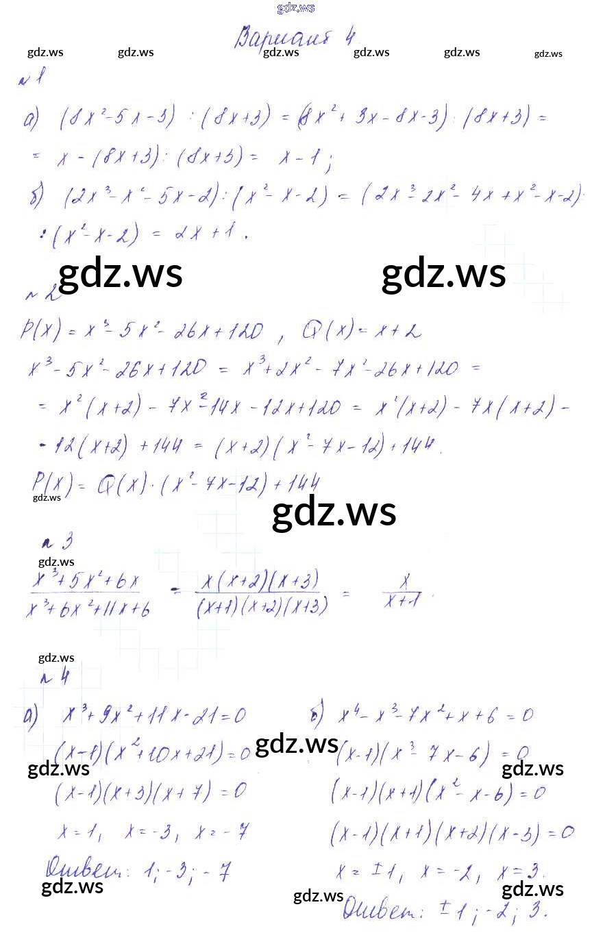 Готовый и полный ответ к СР-1. Деление многочленов. Решение алгебраических уравнений Самостоятельные работы - Алгебре 9 класс Зив Дидактические материалы ФГОС