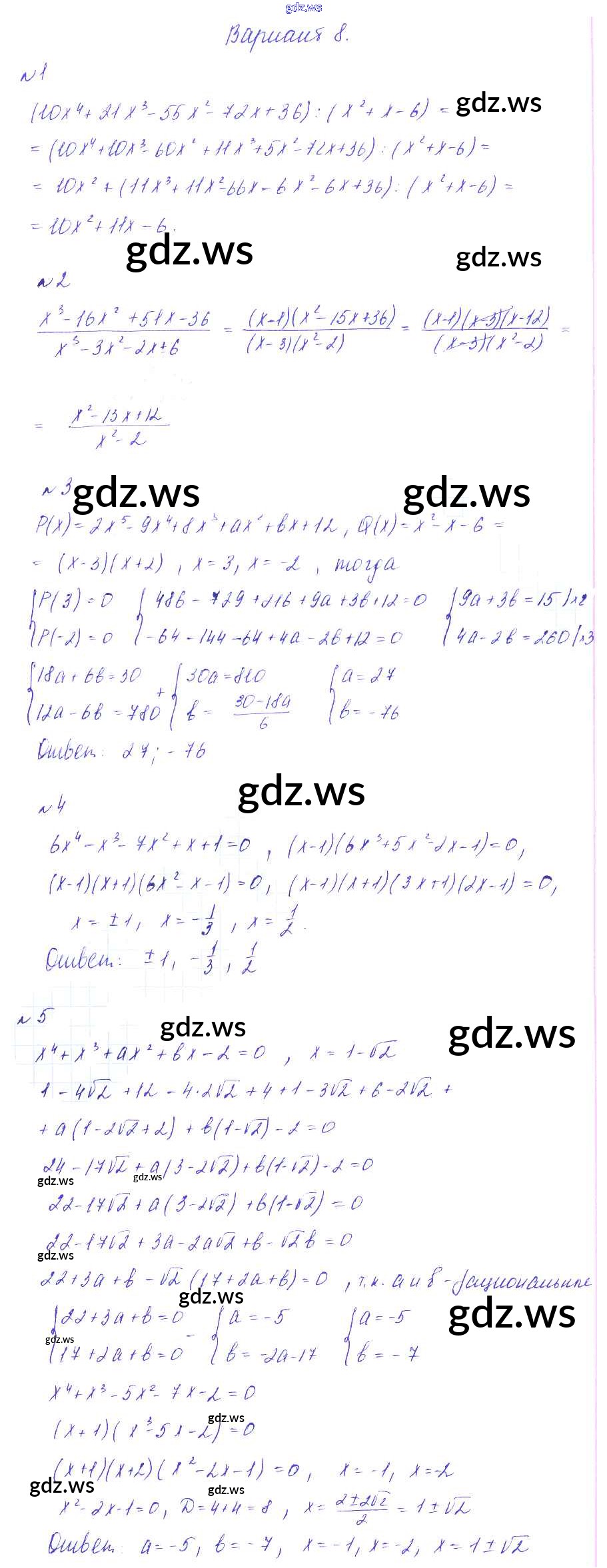 Готовый и полный ответ к СР-1. Деление многочленов. Решение алгебраических уравнений Самостоятельные работы - Алгебре 9 класс Зив Дидактические материалы ФГОС