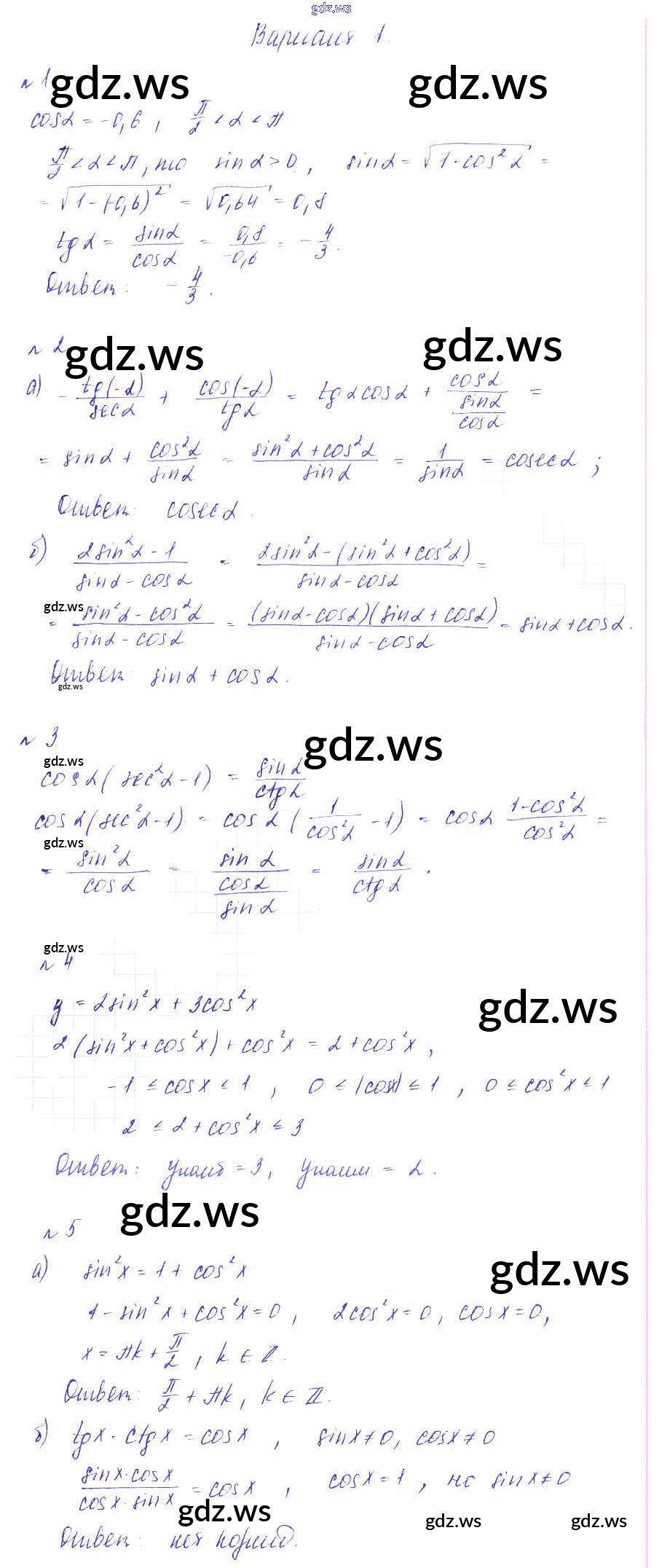Готовый и полный ответ к СР-13. Тригонометрические тождества Самостоятельные работы - Алгебре 9 класс Зив Дидактические материалы ФГОС