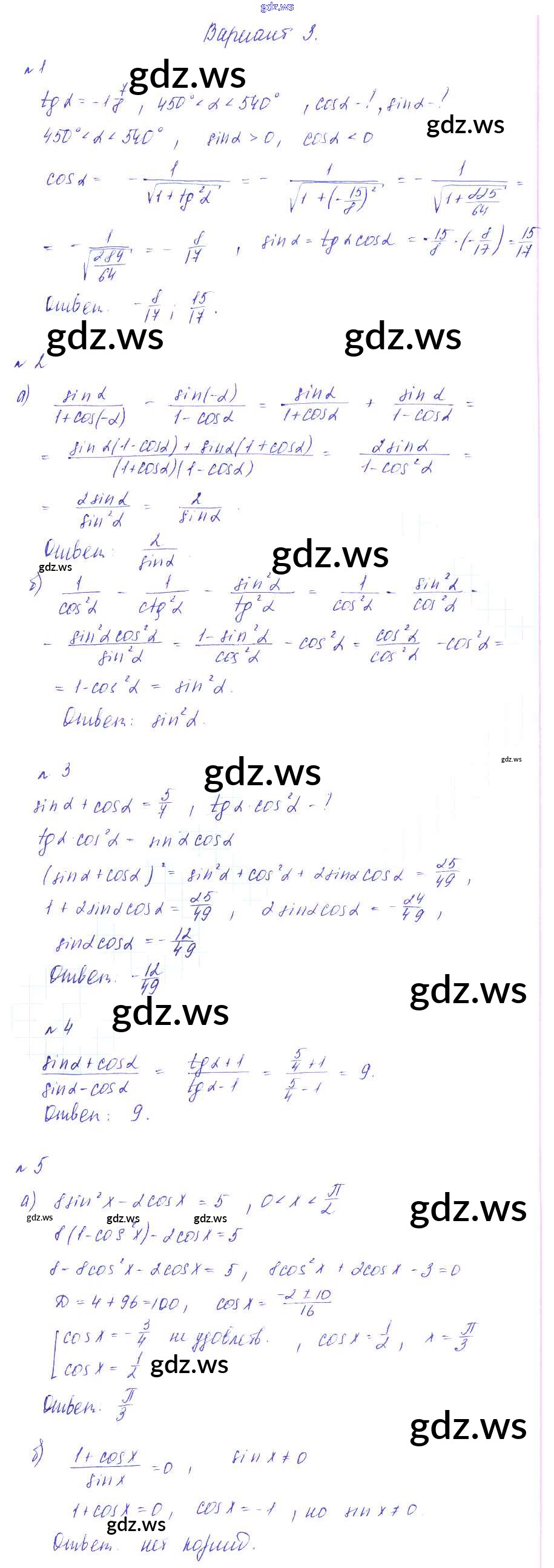 Готовый и полный ответ к СР-13. Тригонометрические тождества Самостоятельные работы - Алгебре 9 класс Зив Дидактические материалы ФГОС