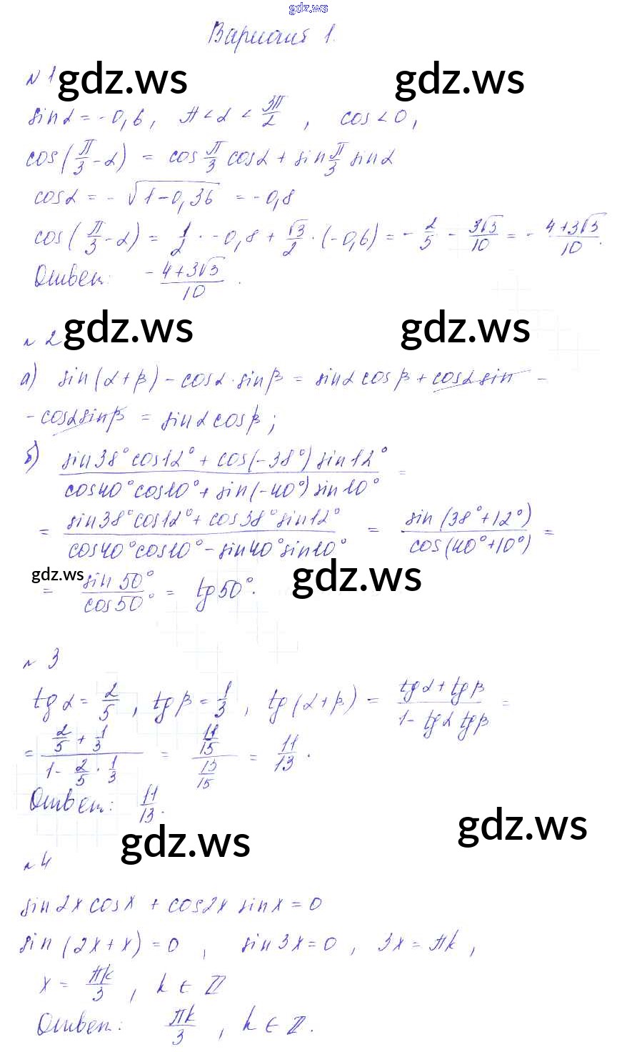 Готовый и полный ответ к СР-14. Формулы сложения Самостоятельные работы - Алгебре 9 класс Зив Дидактические материалы ФГОС