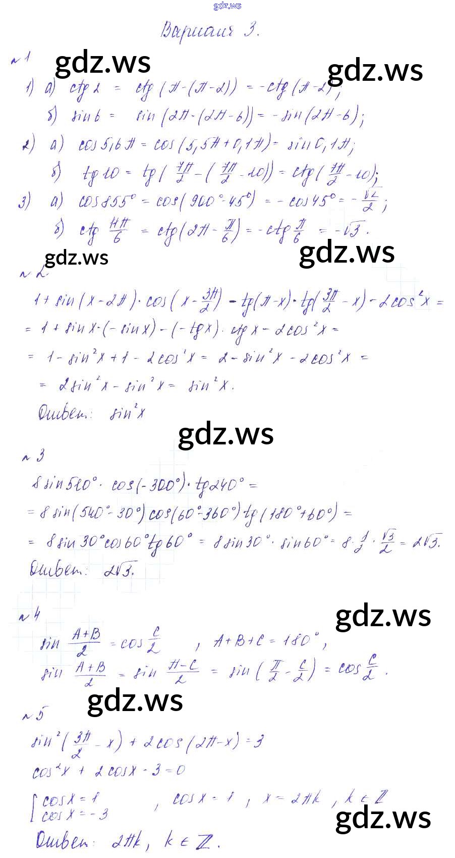 Готовый ответ СР-16. Формулы приведения Самостоятельные работы - Алгебре 9 класс Зив Дидактические материалы ФГОС