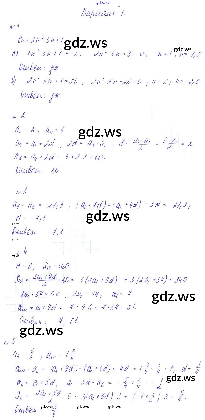 Готовый и полный ответ к СР-17. Арифметическая прогрессия Самостоятельные работы - Алгебре 9 класс Зив Дидактические материалы ФГОС