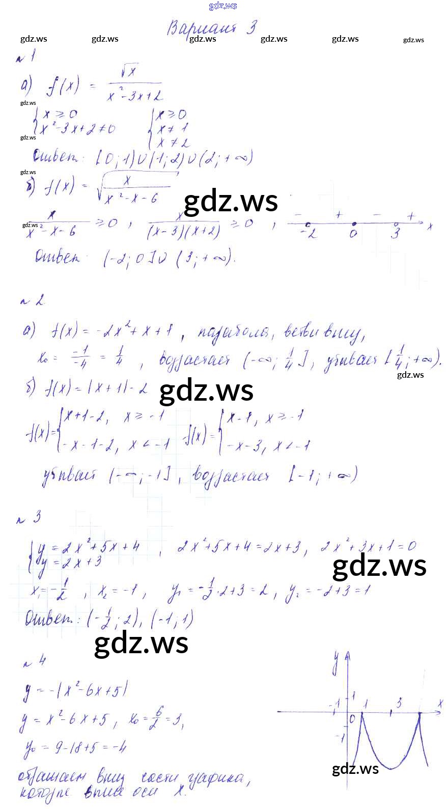 Готовый и полный ответ к СР-9. Область определения функции. Возрастание и убывание функции Самостоятельные работы - Алгебре 9 класс Зив Дидактические материалы ФГОС