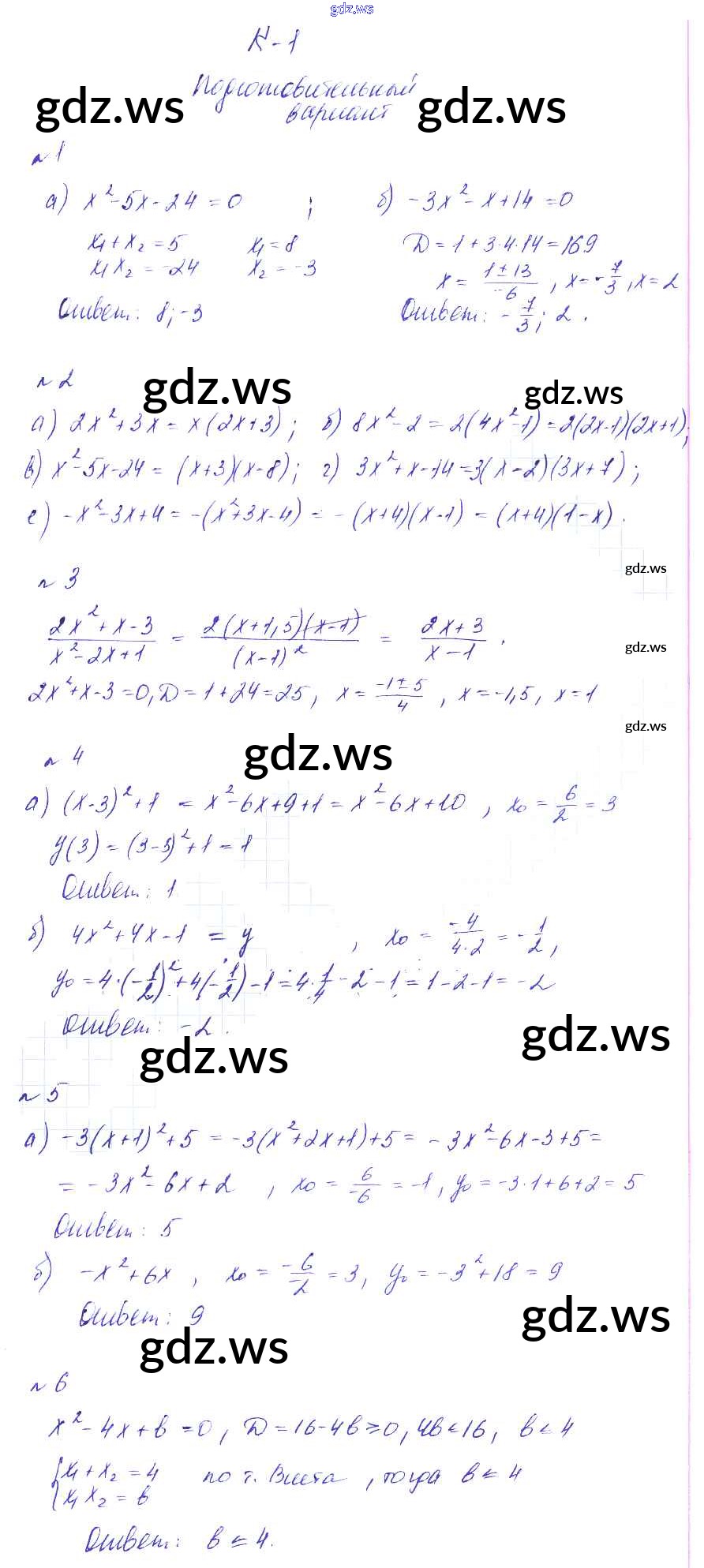 Готовый и полный ответ к КР-1 Контрольные работы - Алгебре 9 класс Звавич Дидактические материалы УМК ФГОС