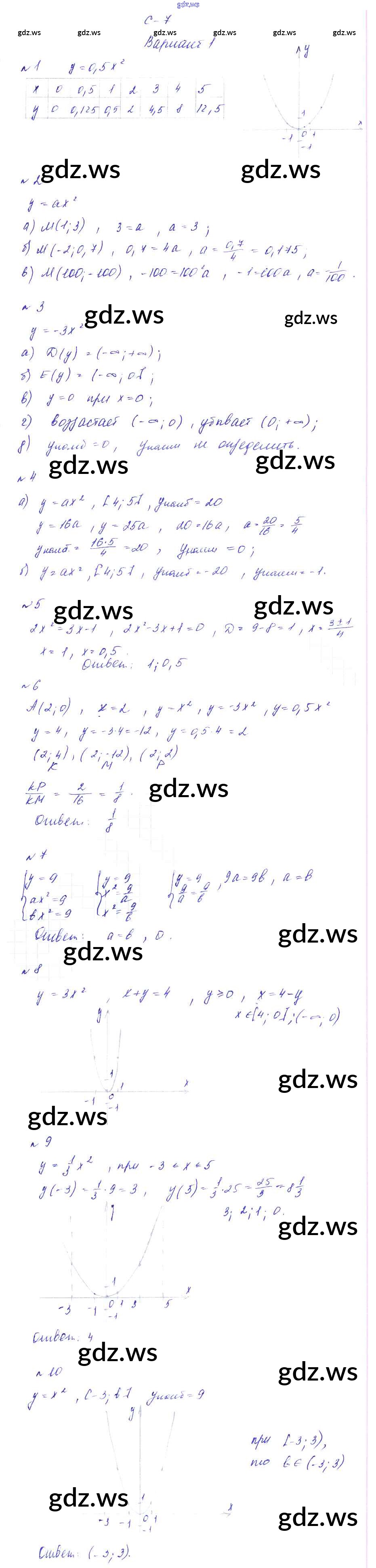 Готовый и полный ответ к СР-7 Самостоятельные работы - Алгебре 9 класс Звавич Дидактические материалы УМК ФГОС