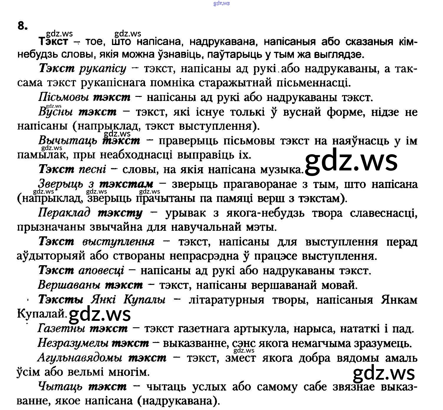Готовый и полный ответ к Упражнения - Белорусскому языку 8 класс Бадзевіч Учебник ФГОС
