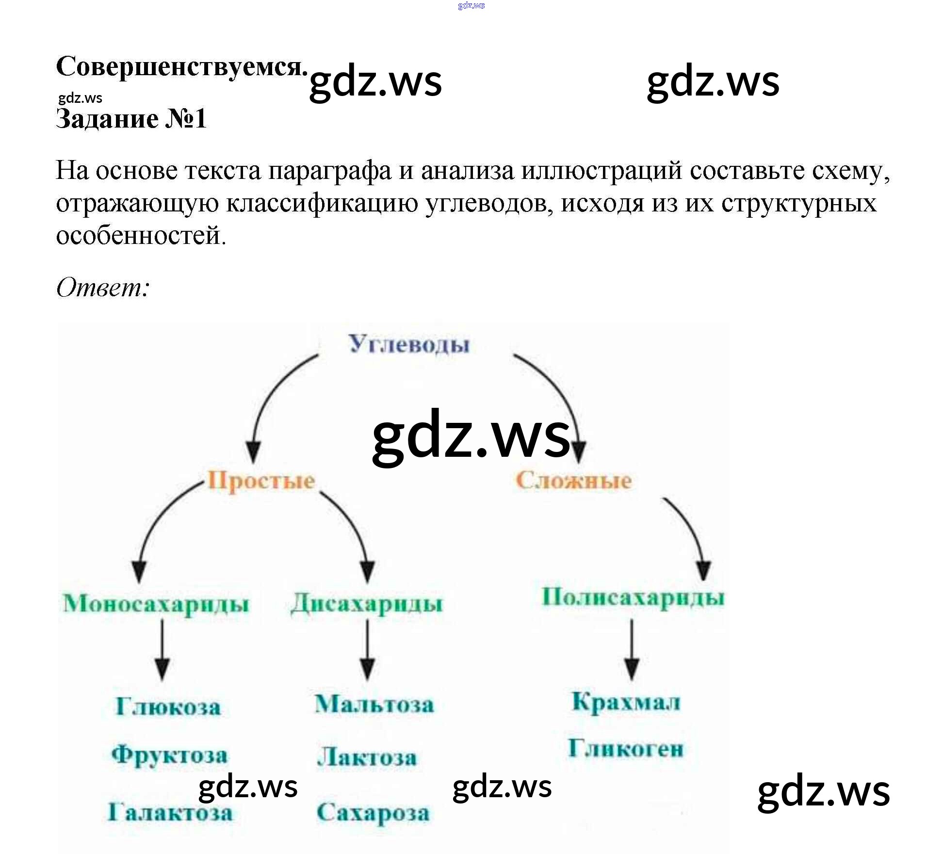 Готовый и полный ответ к Совершенствуемся §8. Углеводы, их строение и функции - Биологии 10 класс Пасечник Учебник Линия жизни ФГОС