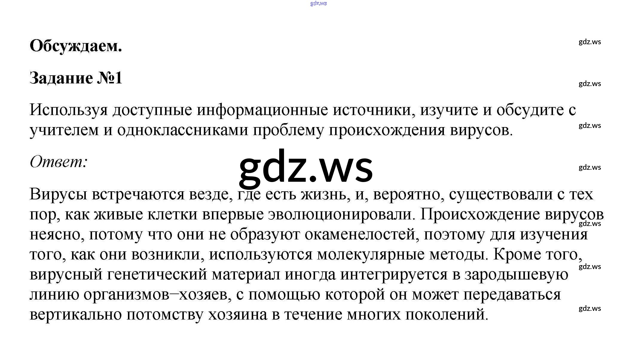 Готовый и полный ответ к Обсуждаем §14. Вирусы — неклеточная форма жизни - Биологии 10 класс Пасечник Учебник Линия жизни ФГОС