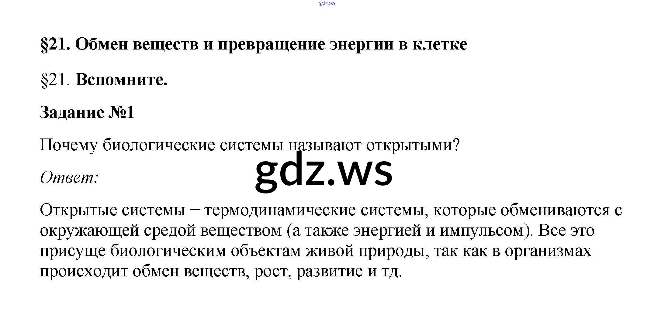 Готовый и полный ответ к Вспомните §21. Обмен веществ и превращение энергии в клетке - Биологии 10 класс Пасечник Учебник Линия жизни ФГОС