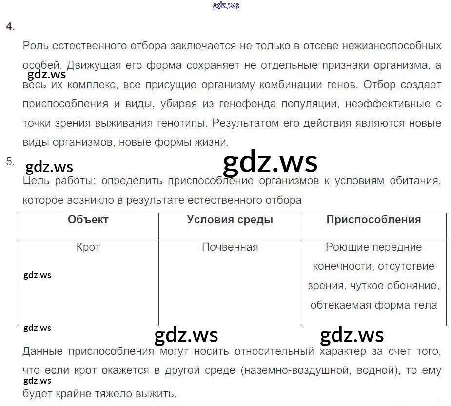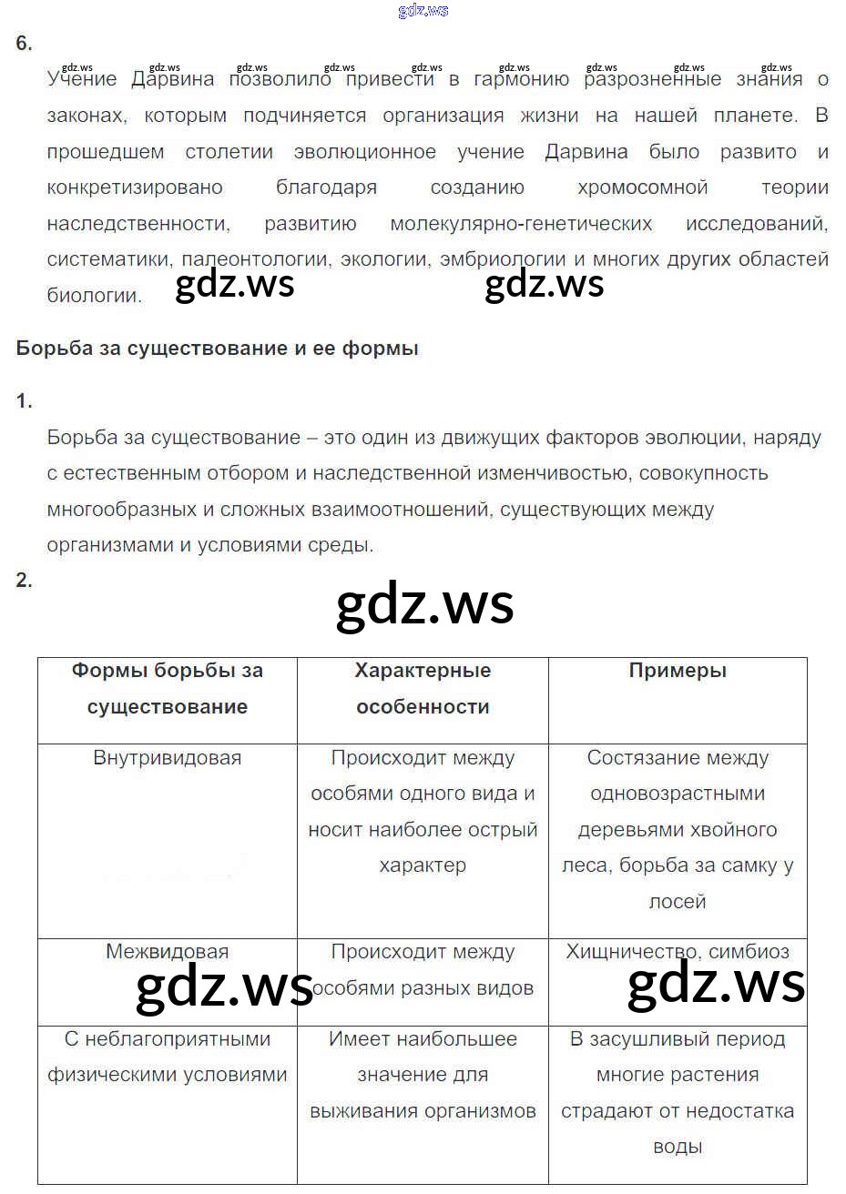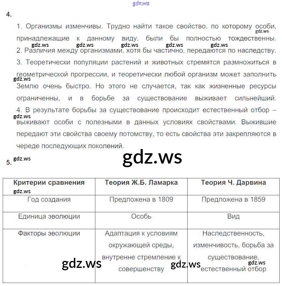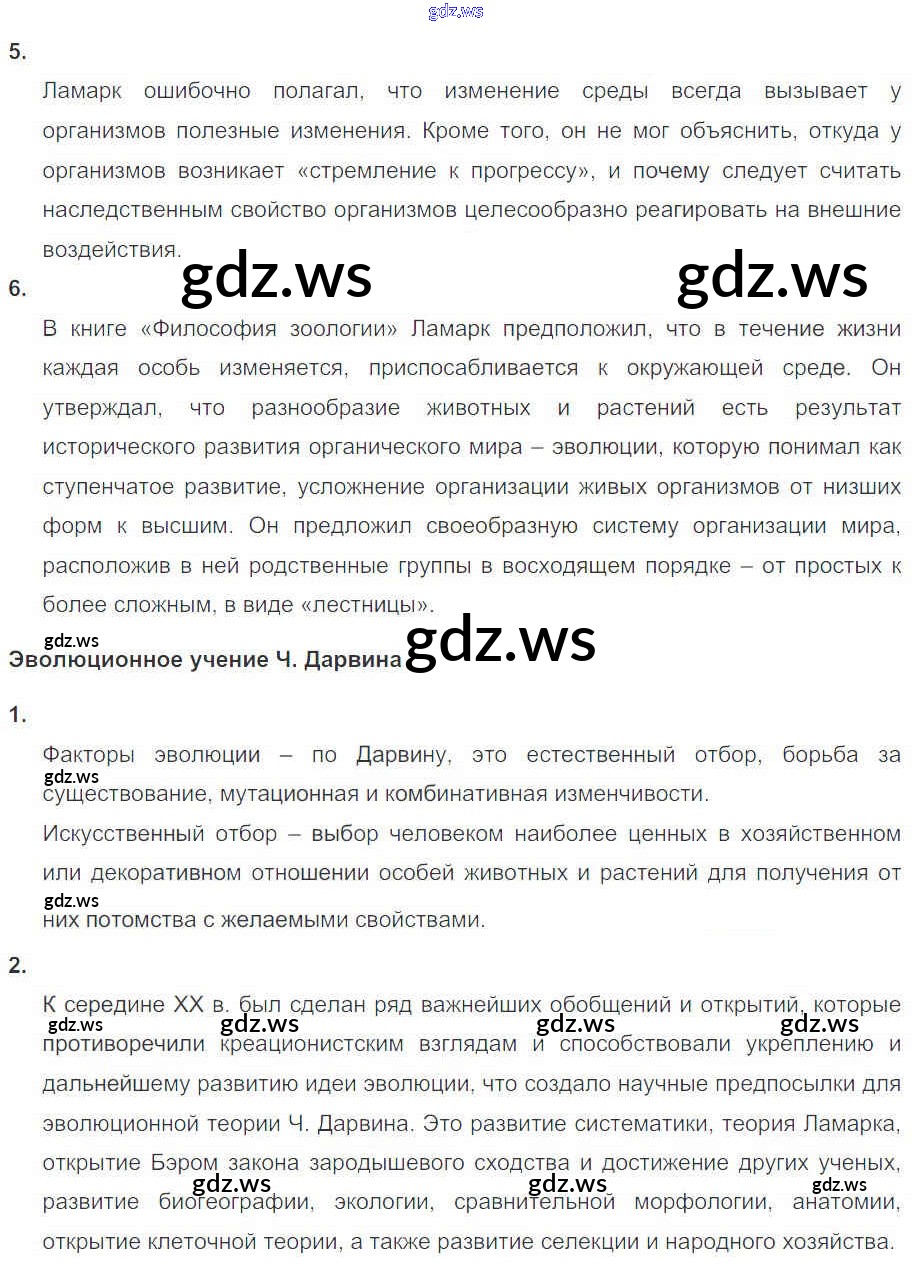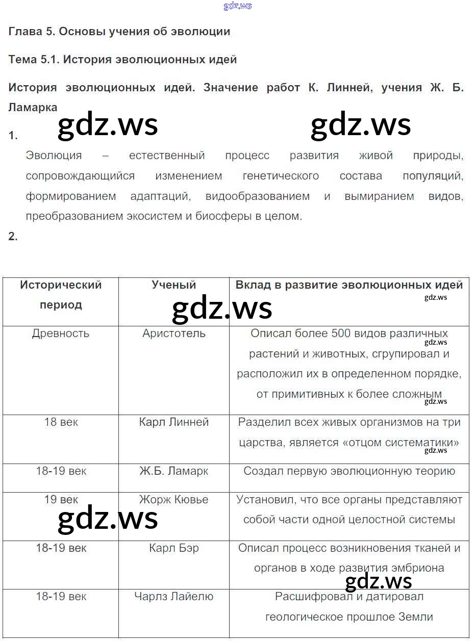 Готовый ответ Глава 5. Основы учения об эволюции - Биологии 11 класс Пасечник Рабочая тетрадь Базовый уровень УМК ФГОС