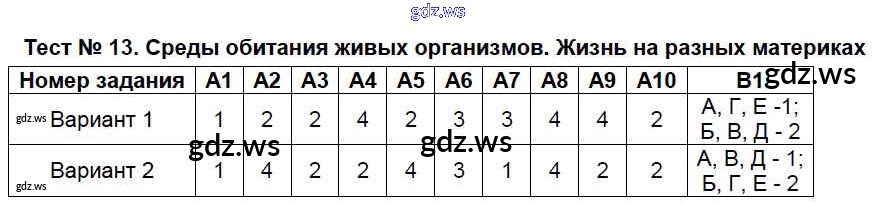 Тест №13. Среды обитания живых организмов. Жизнь на разных материках