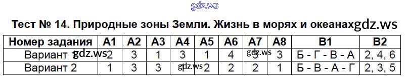 Тест №14. Природные зоны Земли. Жизнь в морях и океанах