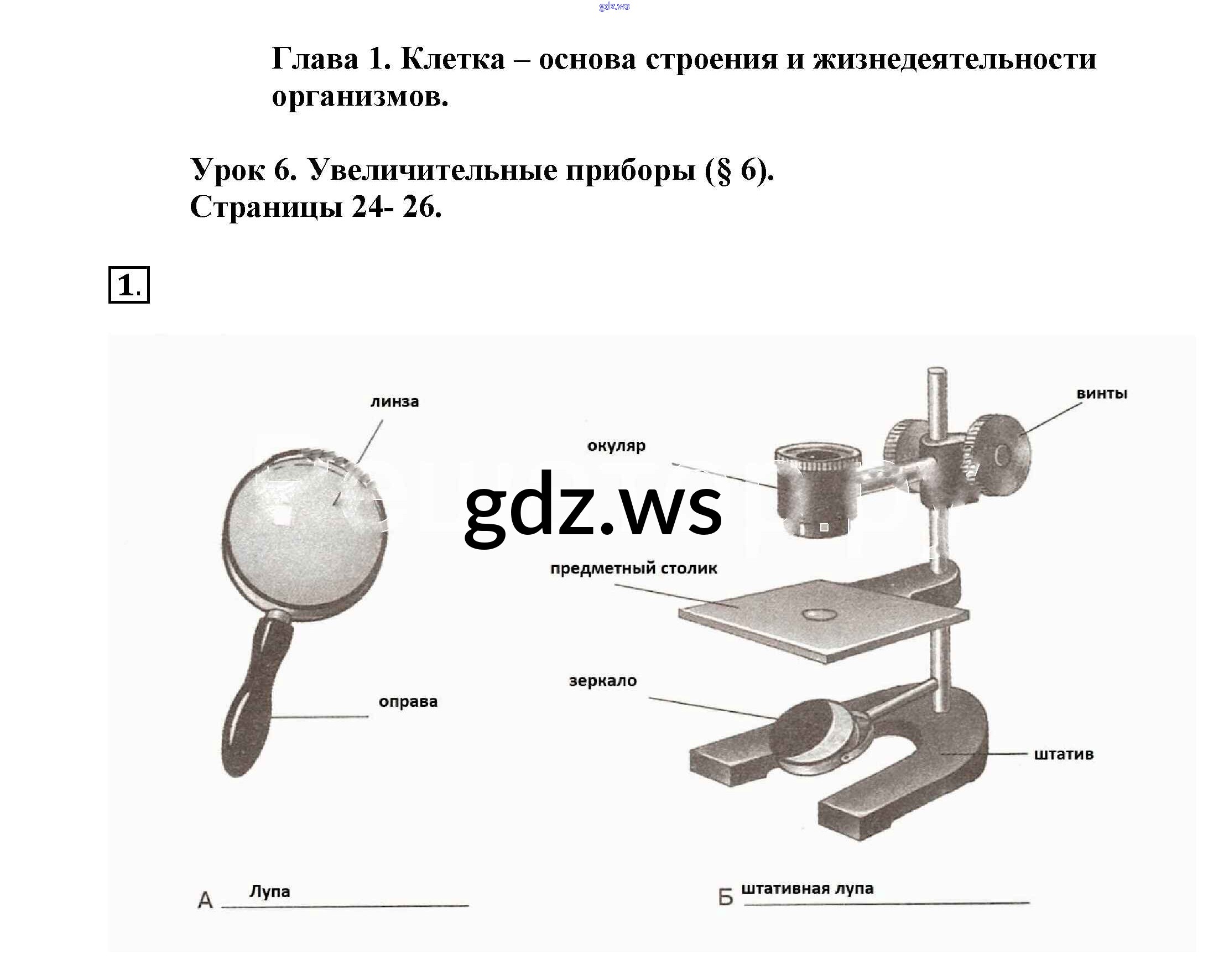 Готовый ответ Урок 6 Рабочая тетрадь 2015 - Биологии 5 класс Пасечник Рабочая тетрадь Линия жизни ФГОС