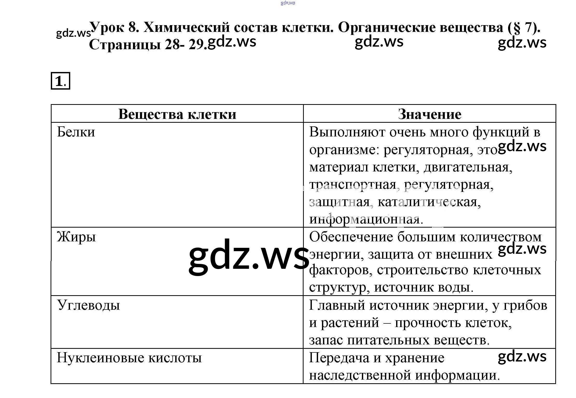 Готовый и полный ответ к Урок 8 Рабочая тетрадь 2015 - Биологии 5 класс Пасечник Рабочая тетрадь Линия жизни ФГОС