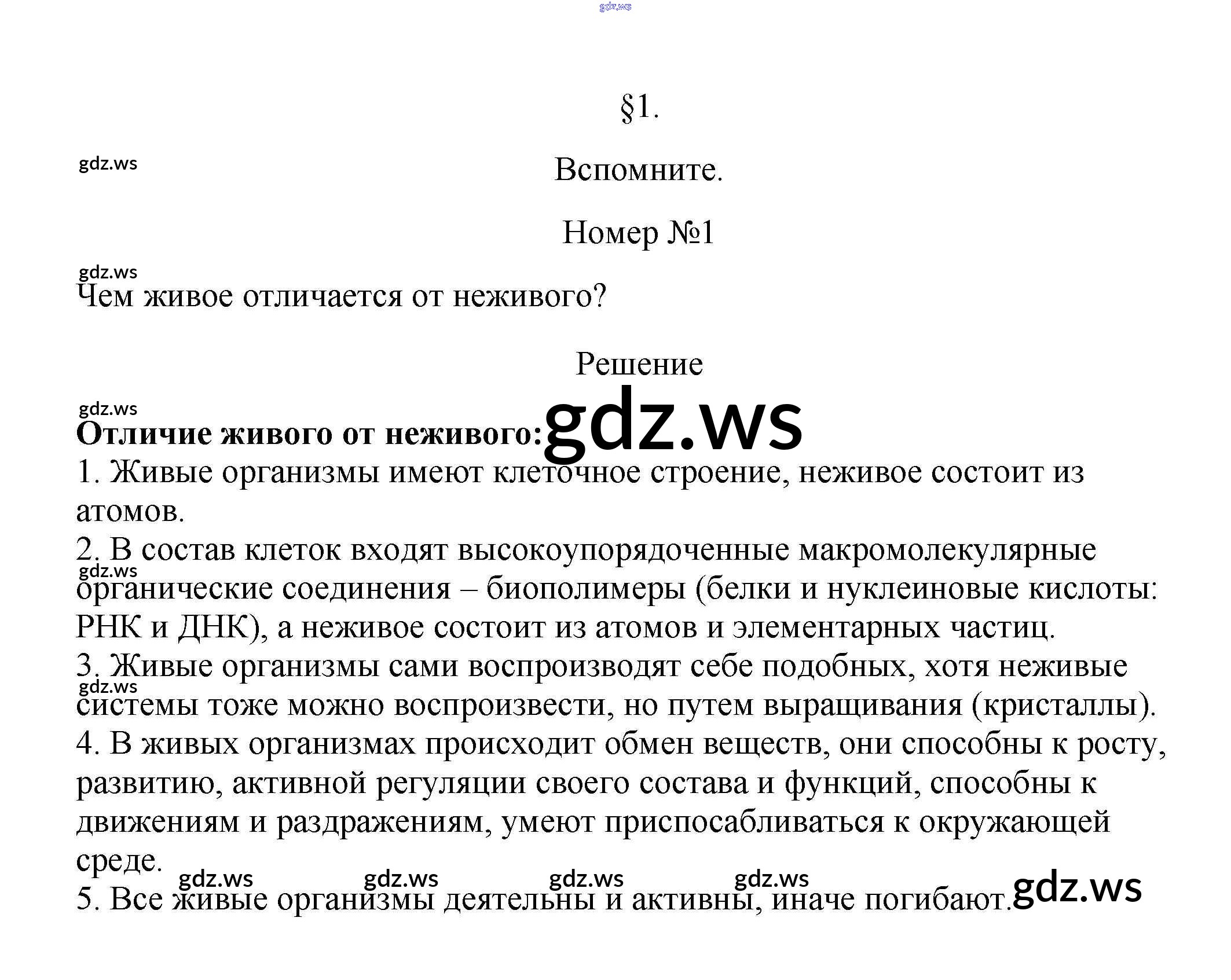 Готовый и полный ответ к Вспомните §1. Биология — наука о живой природе - Биологии 5 класс Пасечник Учебник Линия жизни ФГОС