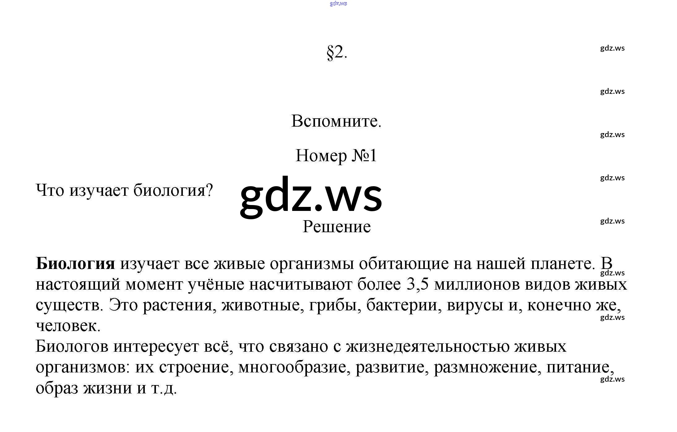 Готовый ответ Вспомните §2. Методы изучения биологии - Биологии 5 класс Пасечник Учебник Линия жизни ФГОС