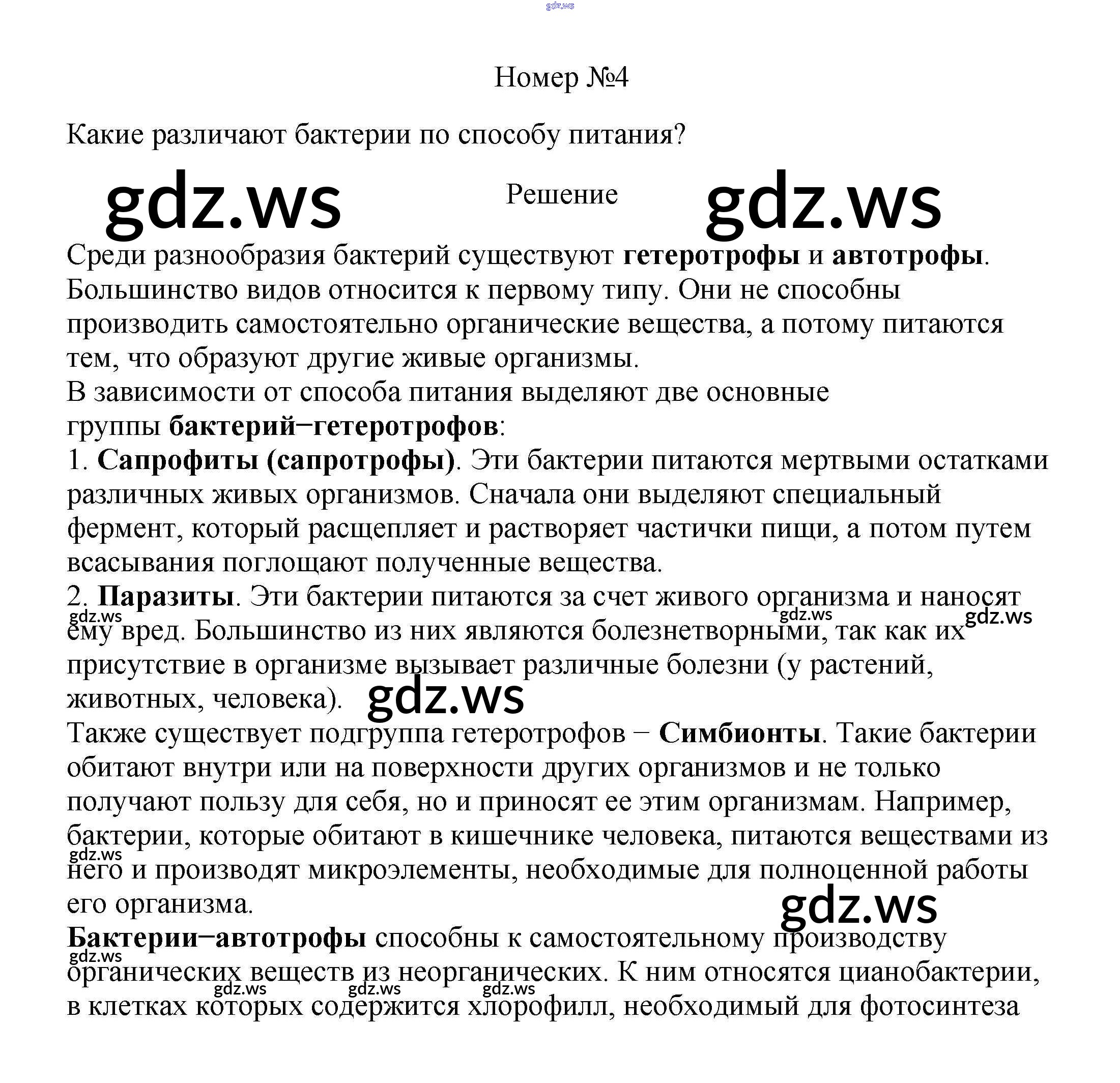 Готовый ответ Вопросы §10. Характеристика царства Бактерии - Биологии 5 класс Пасечник Учебник Линия жизни ФГОС