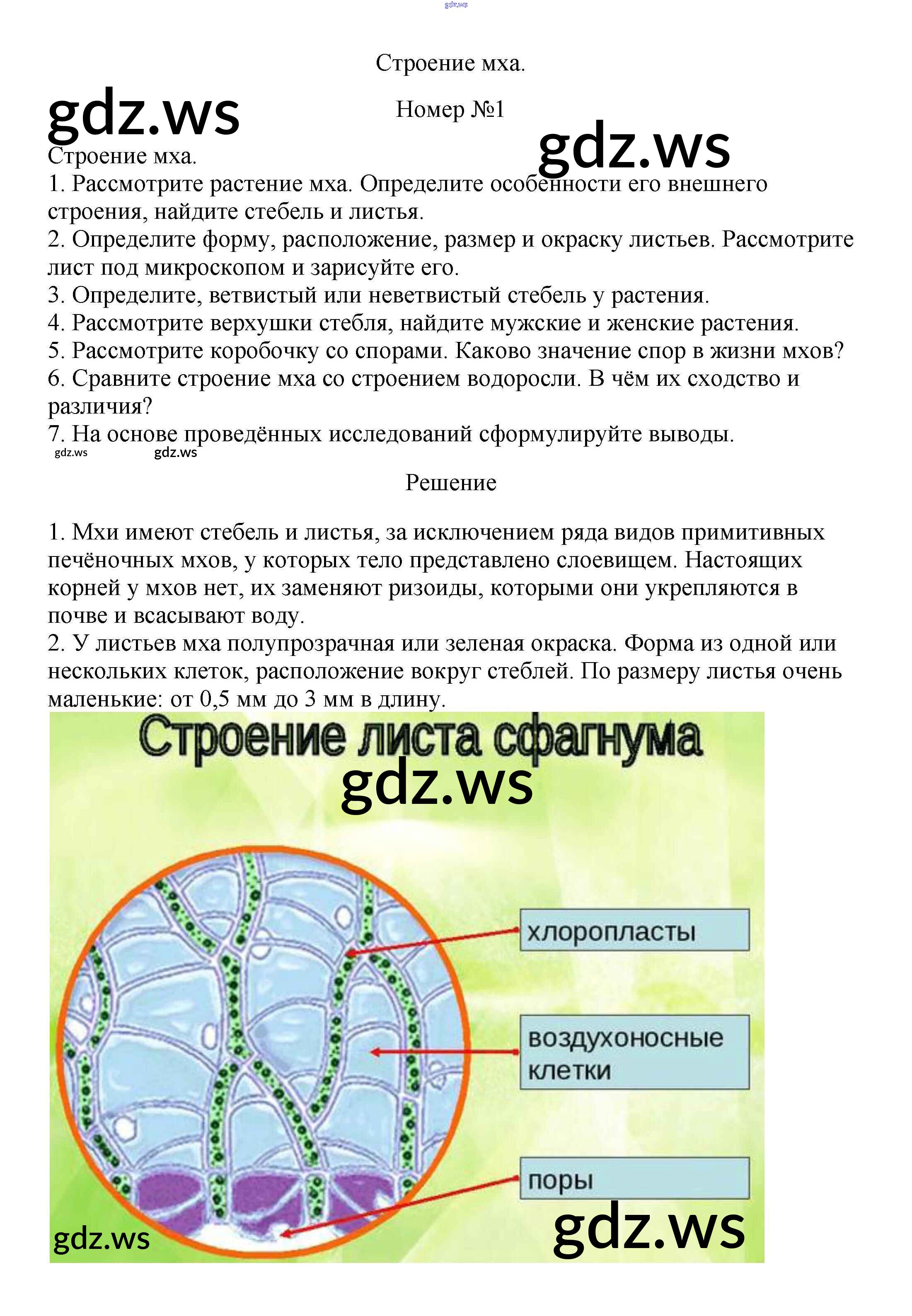 Готовый ответ Строение мха §17. Моховидные - Биологии 5 класс Пасечник Учебник Линия жизни ФГОС