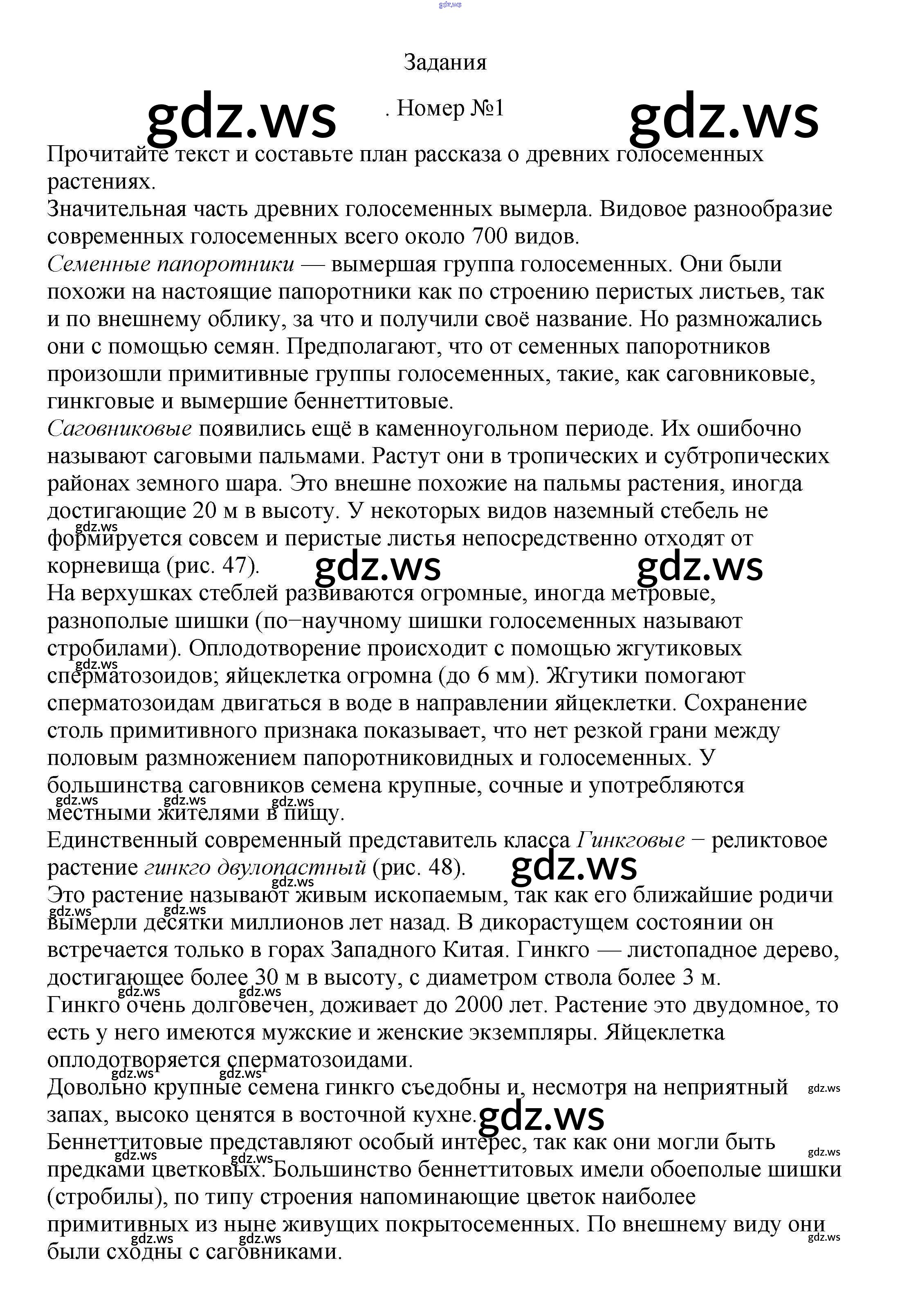 Готовый и полный ответ к Задания §19. Голосеменные растения - Биологии 5 класс Пасечник Учебник Линия жизни ФГОС